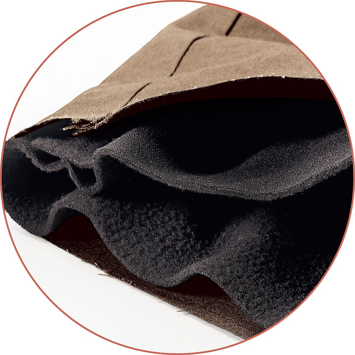 表裏はボンディングではなく縫い合わせにすることでストレッチ性を損なわず、柔らかく仕上げました。