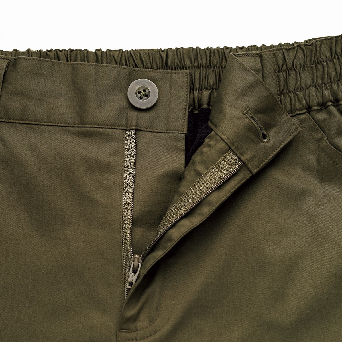 • こだわりの快適仕様 ウエストは総ゴムでラクなのに、前ファスナーの本格仕様。ベルトループまで付いたこだわり派