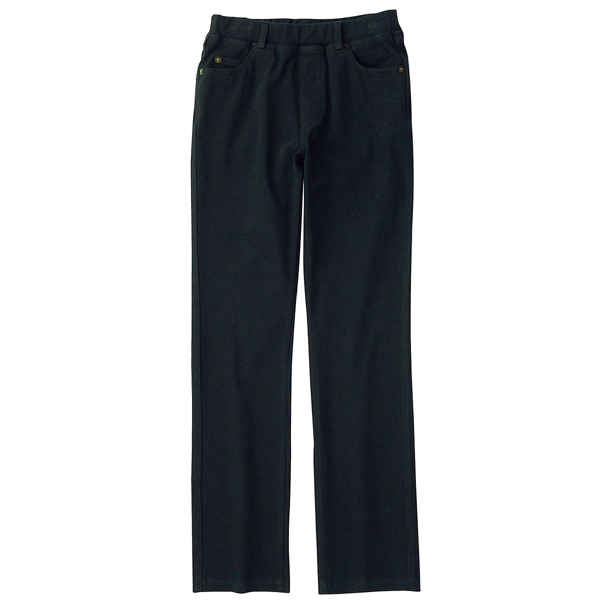-お買い得ポイント-「見た目は本格デニムなのに快適なはき心地」が自慢のスマートニットジーンズです。-デザイン-脚を長くきれいに見せてくれる定番のストレートタイプなので、適度なゆとり感があり上品な着こなしが叶います。ウエストは総ゴムでお腹まわりが楽ちん。-素材特徴-立ったり座ったりのアクティブな動きにも、しっかりついてくるヨコストレッチニット素材は、元に戻る力も強いので、膝がポコッと出にくくて綺麗なシルエットを保てます。