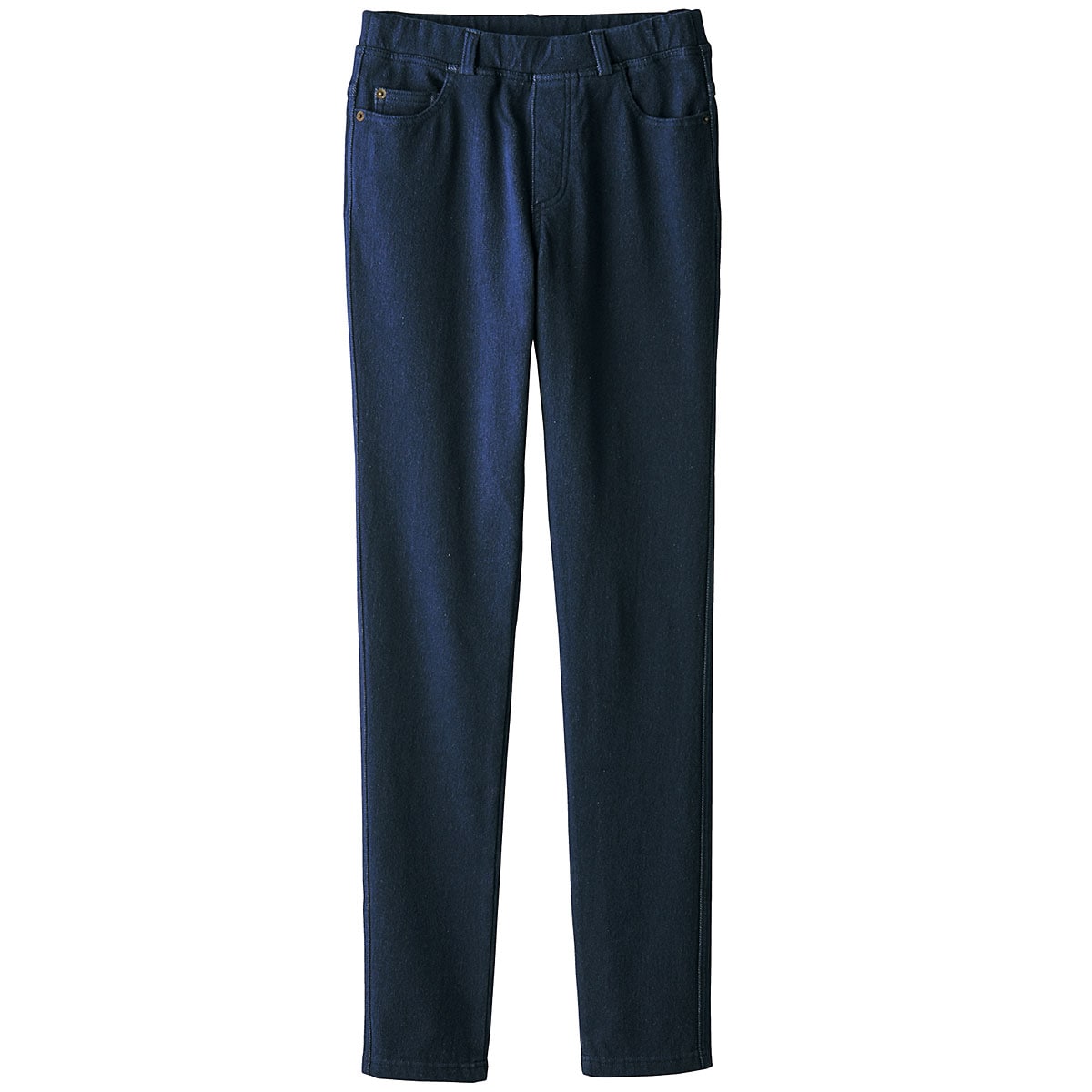 表側はデニム風ニットで裏側はあたたかな裏起毛素材。柔らかな肌ざわりで、はいた瞬間のヒンヤリ感を軽減します