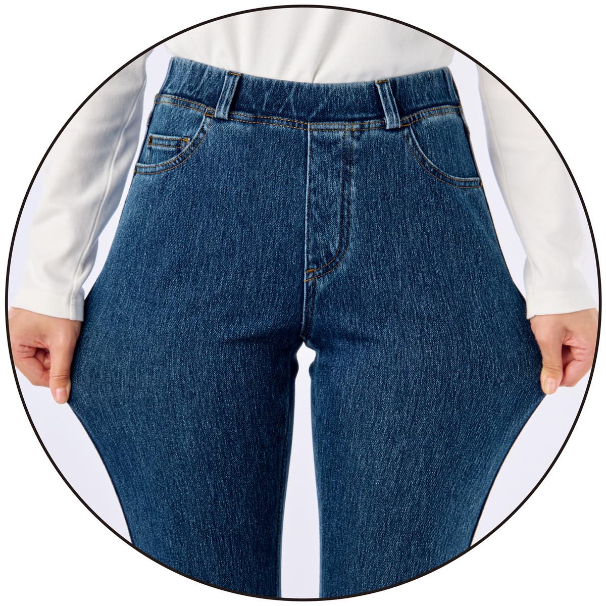 はいたときにヒヤッとしないあったかい冬の定番、デニム見えパンツ。今季もしっかりした肉厚の裏起毛ニット素材を採用、ストレッチ性があり、驚くほど伸びがよく、動きやすくて快適なはき心地が自慢です。ニットのやわらかい素材感を生かしながら、美脚シルエットにこだわりデイリーからちょっとしたお出かけまで大活躍。サイズはSからの8サイズ展開、股下はお客様の要望にお応えし4丈から選べます。届いてすぐ!お使い頂けます♪