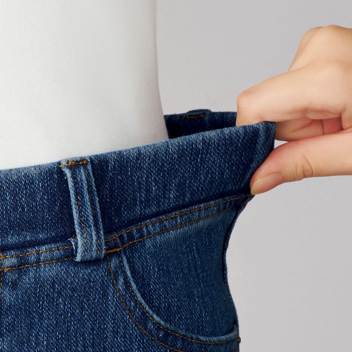 見た目やディテールは本格デニム仕様なのに、よく伸びてやわらかなニットデニム素材を使用することで、はき心地の良さ&動きやすさを実現!