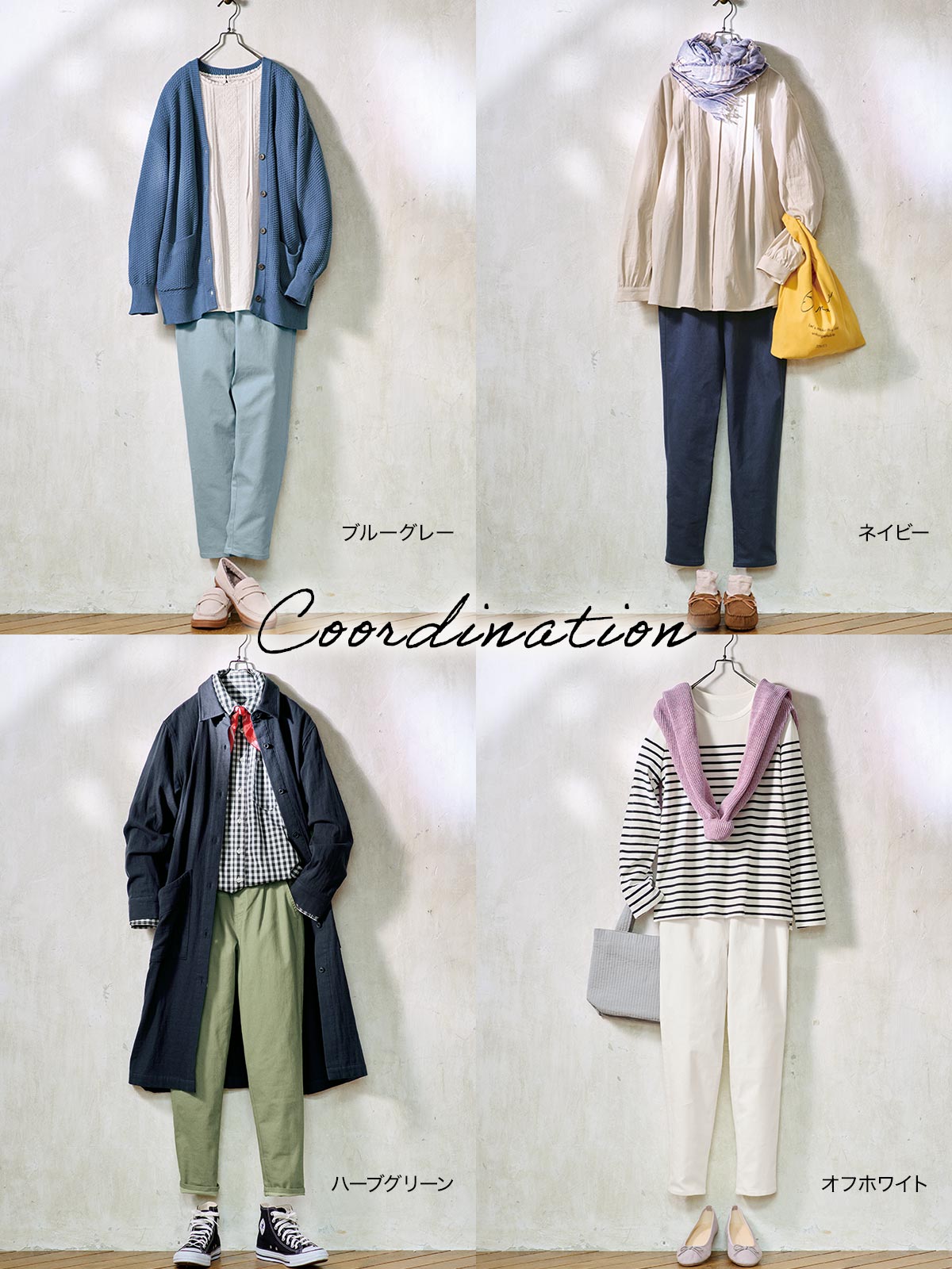 -お買い得ポイント-こだわりのディテールがつまった、ゆったりレギンスパンツ!-デザイン-フロントタックで腰周りともも周りに余裕を持たせ、足元に向かってすっきり細くなるシルエット。程よいヌケ感を生むアンクル丈が細見え効果を発揮!飾りボタンとファスナー風のステッチ、ベルトループできちんと見えも叶えるアイテムです。サイドポケットはスマホがすっぽり入る大きさで優しさあふれる設計!-素材特徴-動きについてくるストレッチツイル素材とウエスト総ゴム仕様で快適な履き心地!