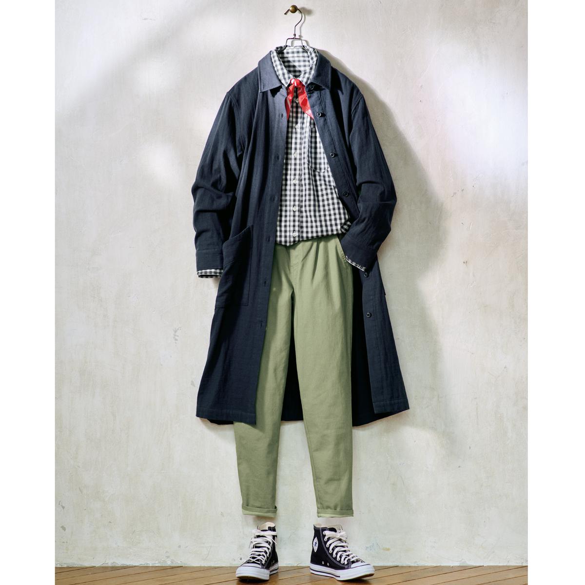 こだわりのディテール 心地よいハリのある綿混ツイル素材。