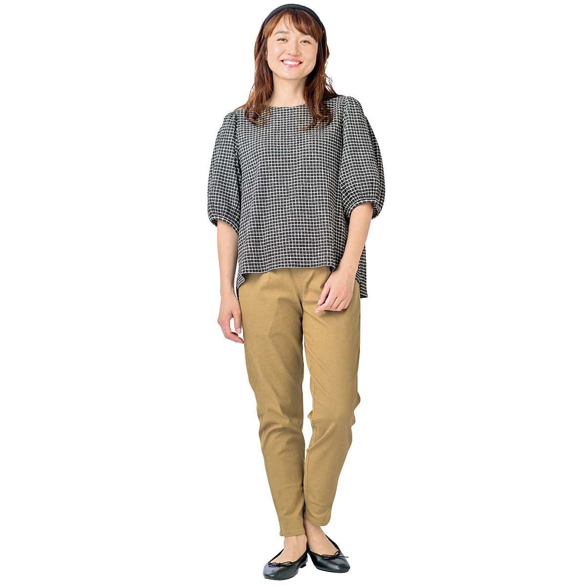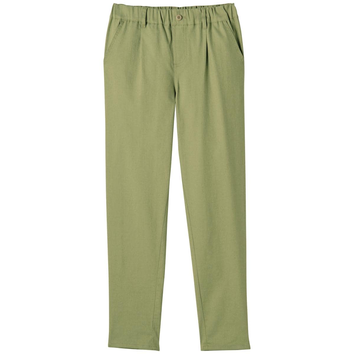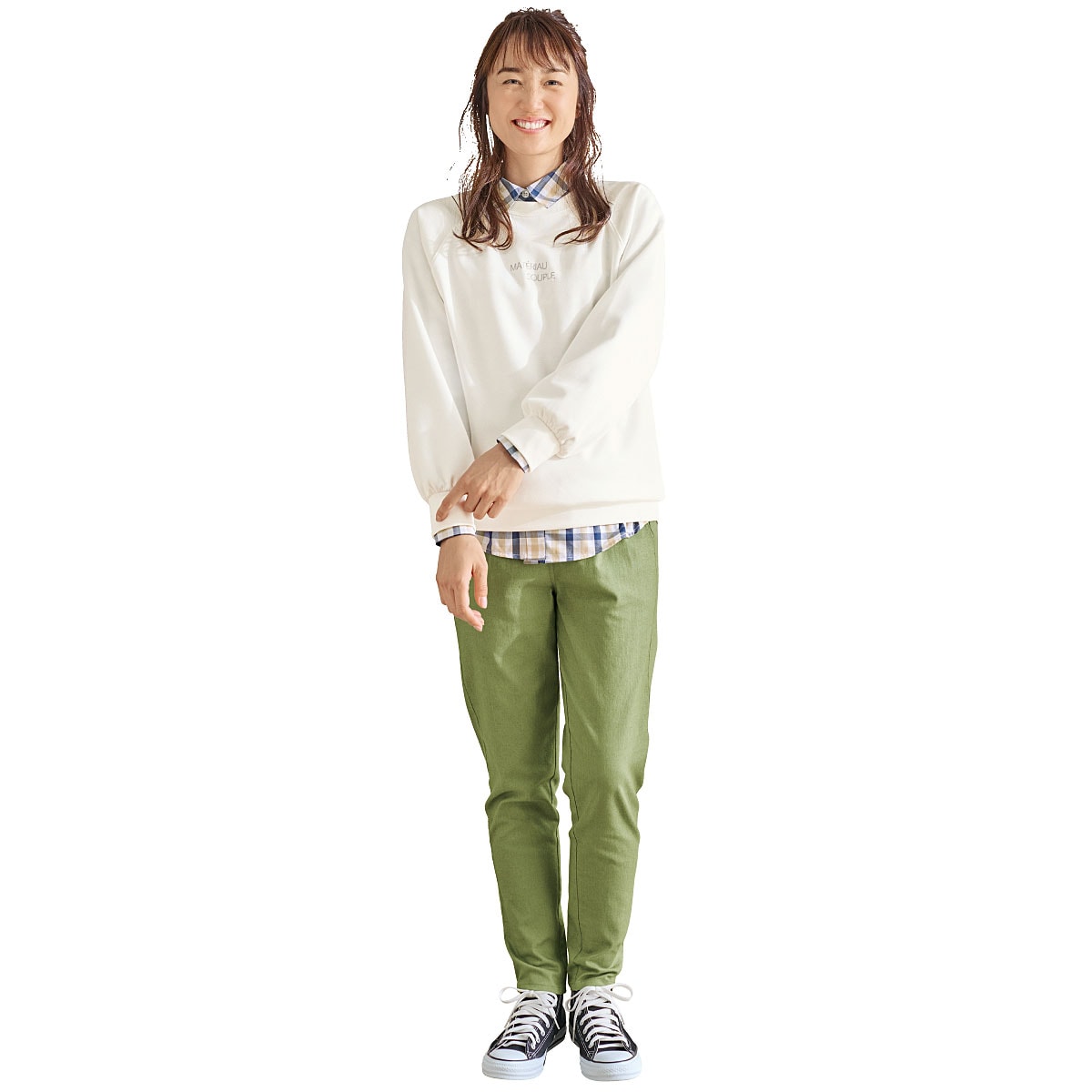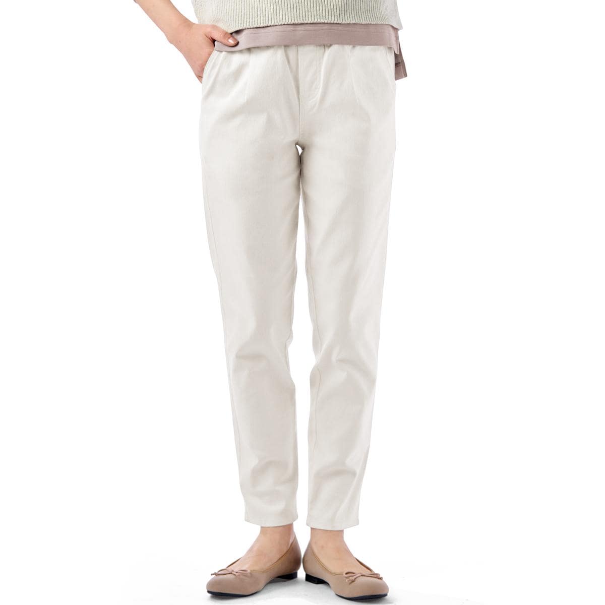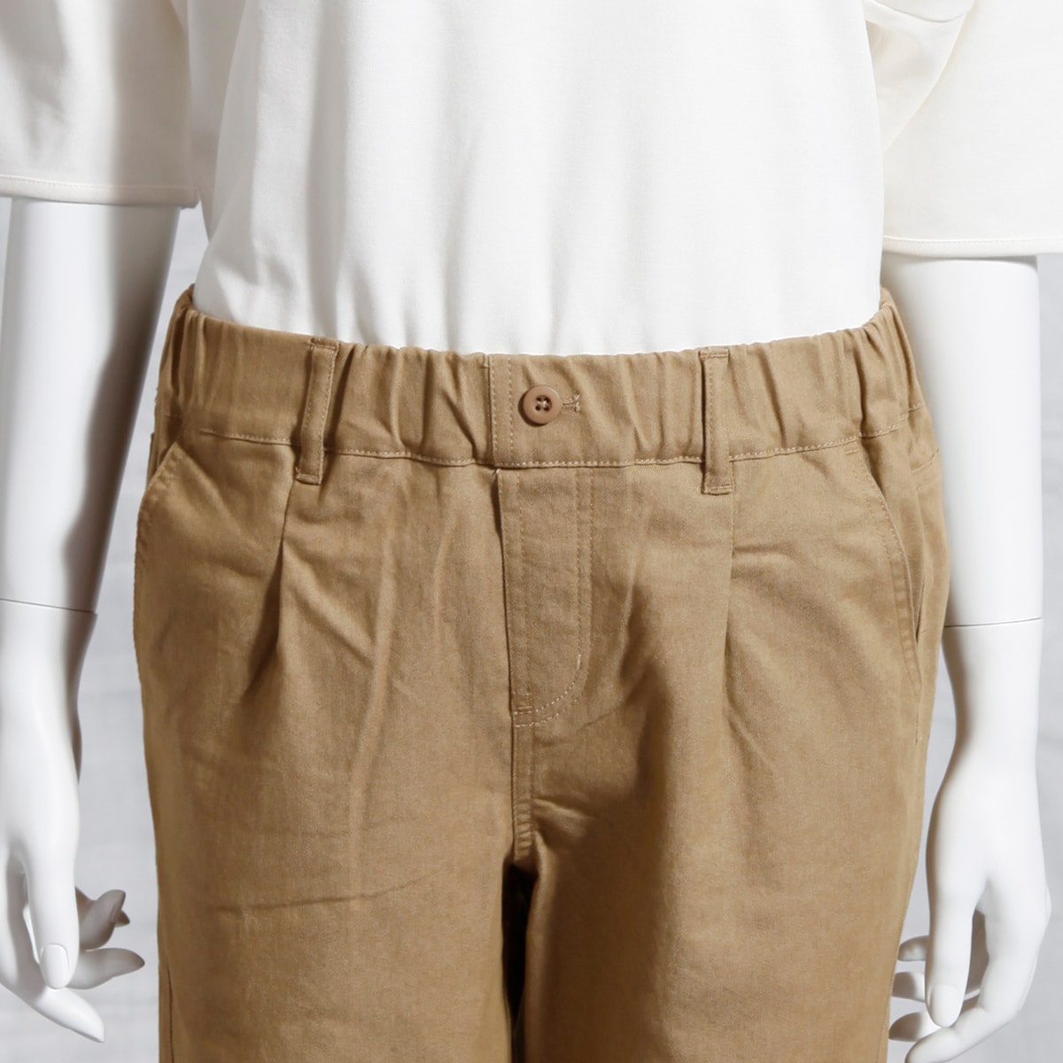 -お買い得ポイント-こだわりのディテールがつまった、ゆったりレギンスパンツ!-デザイン-フロントタックで腰周りともも周りに余裕を持たせ、足元に向かってすっきり細くなるシルエット。程よいヌケ感を生むアンクル丈が細見え効果を発揮!飾りボタンとファスナー風のステッチ、ベルトループできちんと見えも叶えるアイテムです。サイドポケットはスマホがすっぽり入る大きさと深さで、イスに座った時も落ちにくい優しさあふれる設計!-素材特徴-動きについてくるストレッチツイル素材とウエスト総ゴム仕様で快適な履き心地