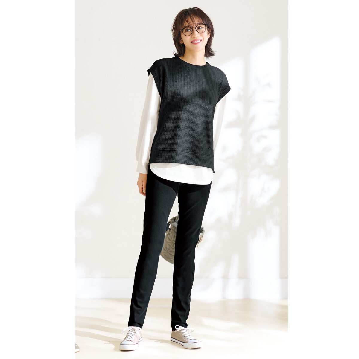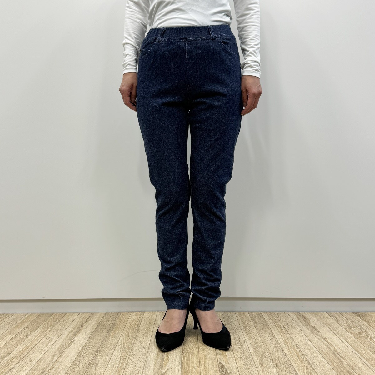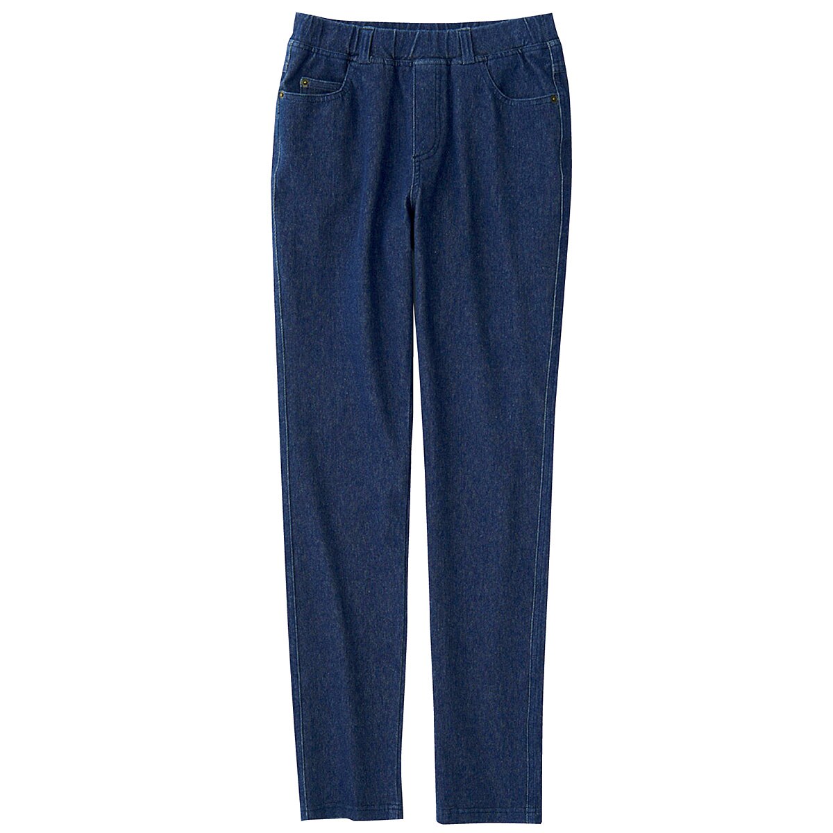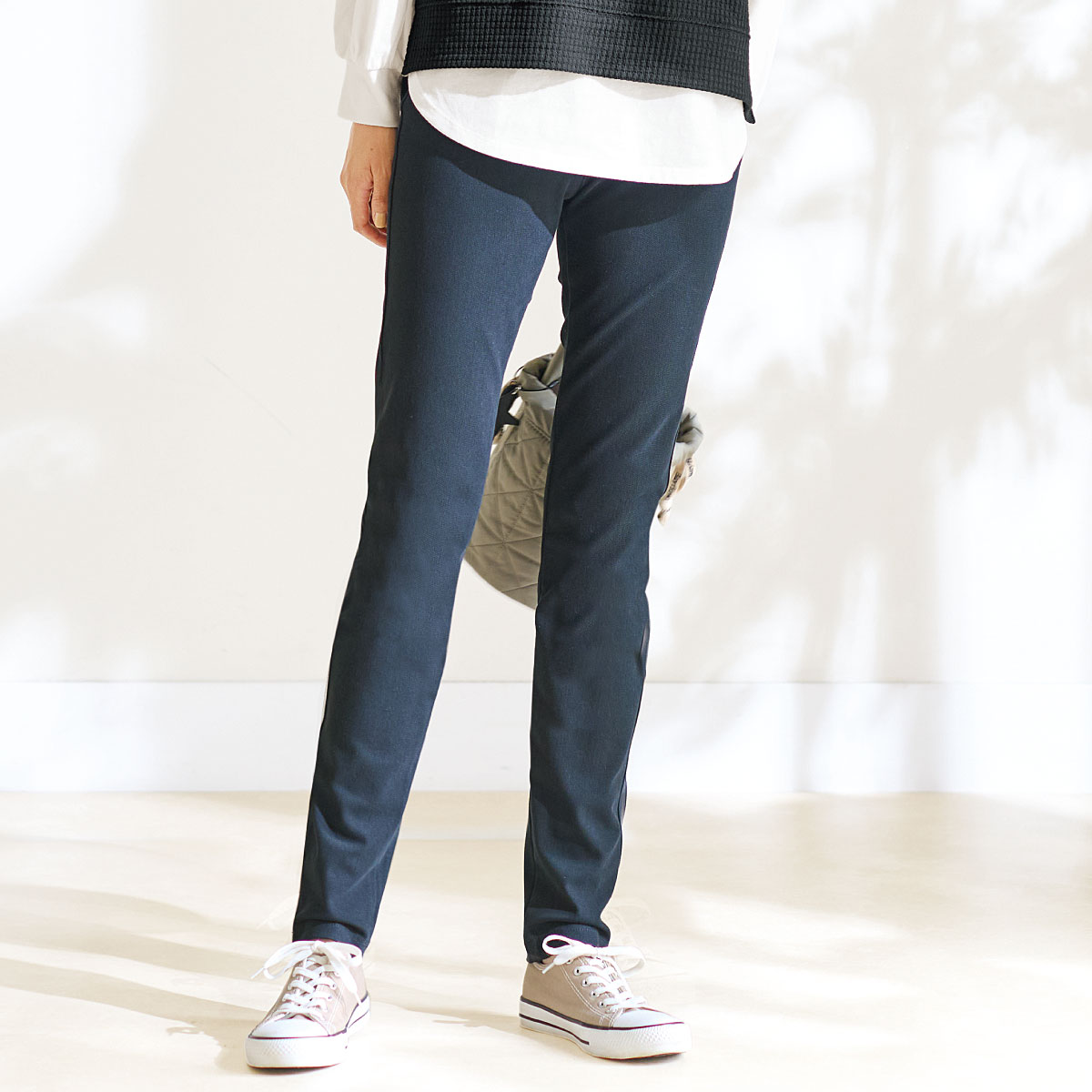 -お買い得ポイント-こだわりのディテールでスリムな見た目ながら、快適なはき心地の本格デニム見えスキニーパンツです。-デザイン-美脚見えにこだわりつつ動きやすさも兼ね備えた、着まわしがきく便利なアイテムです。さらにウエスト総ゴム仕様なのでお腹まわりもラクラク!-素材特徴-ストレッチニット素材なのでやわらかく、適度な厚みがあり脚のラインを拾いにくいので、気になる部分もすっきりカバーしてくれます。