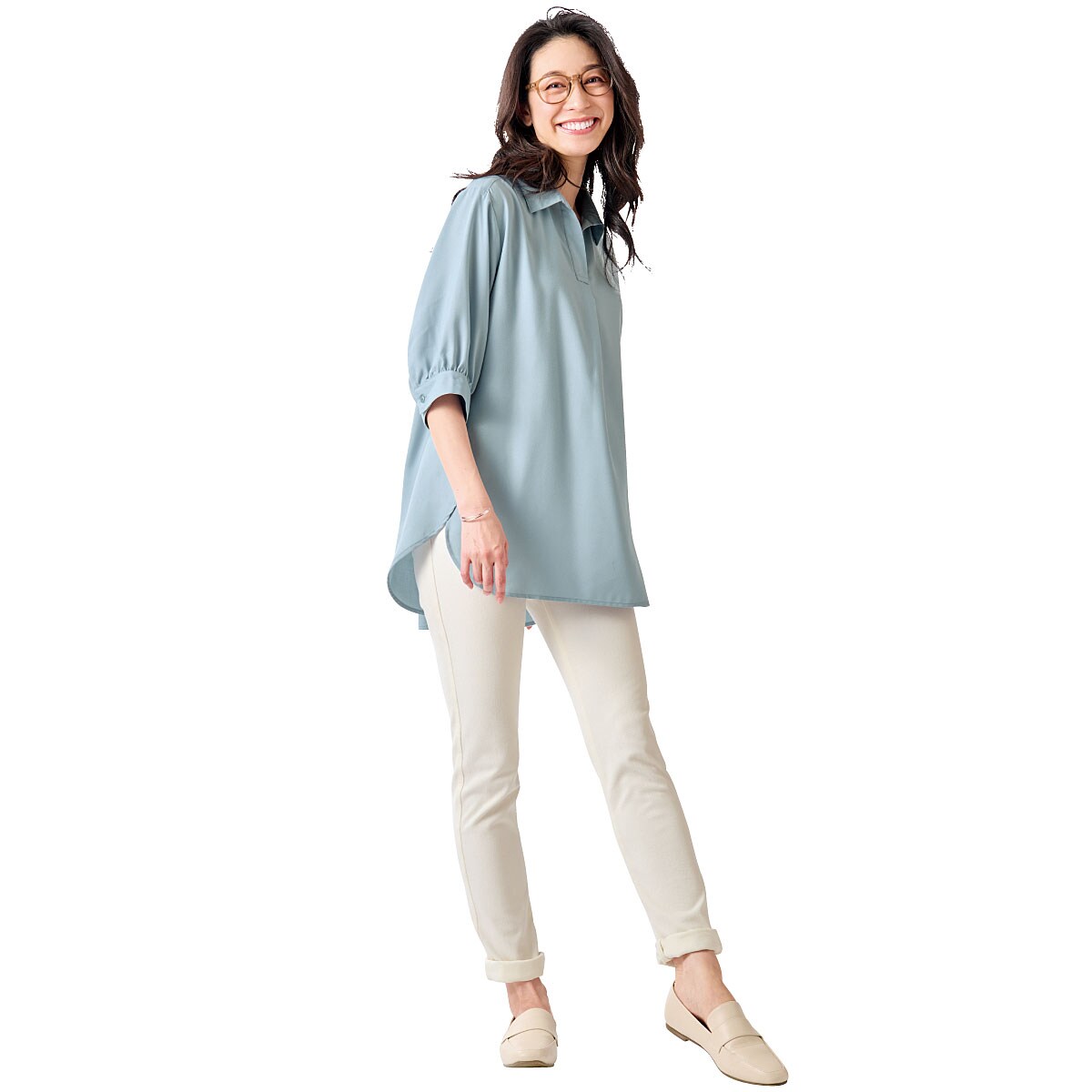 60代 / 女性 / 身長:155~160cm(普段のサイズ L)身長158体重58、Lサイズ。股下68で、くるぶしよりちょい上で、もたもたせず履けます。生地は少し厚め、伸びは最高。シルエットは、ややピッタリしていますが、チュニックを合わせるなら問題なしです。毎日履けるらくらくパンツです。スキニージーンズタイプ、3本買ってしまいました。
