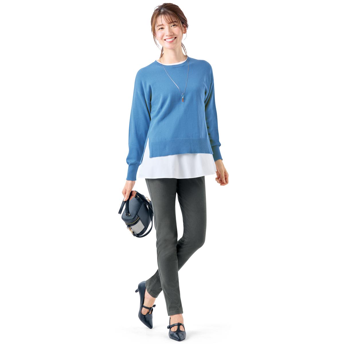 シリーズ累計207万本突破の本格デニム見えするやわらかニットのスキニーパンツです。動きについてくるストレッチニット素材を使用し、元に戻る力も強いので快適なはき心地♪シンプルなデニム風のパンツだから着まわしやすく、スタイルも決まりやすいのが嬉しい♪