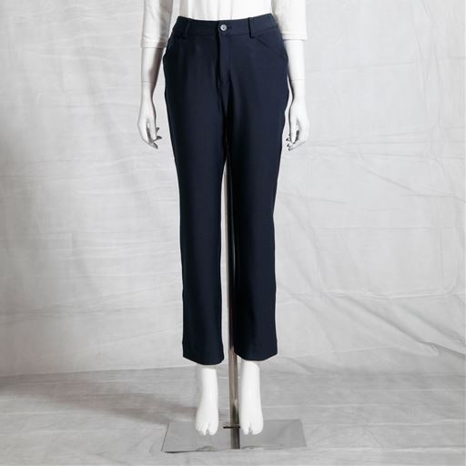 -お買得ポイント-微光沢とツヤ感のある日本製の生地使用!全方向ストレッチでらくちん&前開きの本格仕様できちんと見えも叶います。-デザイン-定番のストレートパンツはすっきりとしたシルエットでコーディネートしやすいのもポイント。脚をすらっと見せてくれる美脚効果も期待できます。伸縮性があるから、ひざも出にくい。-素材特徴-タテ・ヨコ・ナナメの全方向ストレッチでよく伸びるニット素材は、柔らかいはき心地で窮屈感なし!シワにもなりにくいのでデイリーに活躍します。