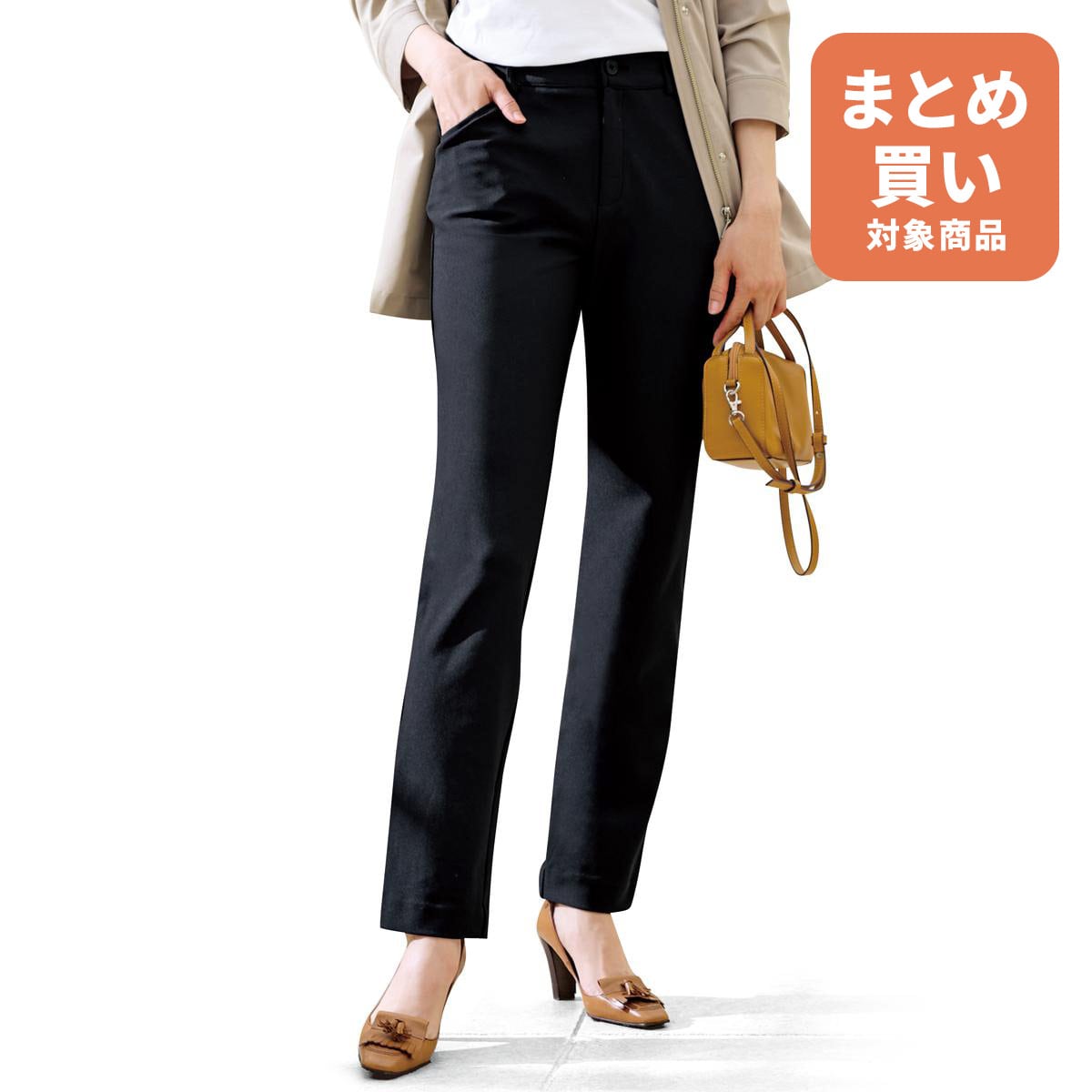 -お買得ポイント-微光沢とツヤ感のある日本製の生地使用!全方向ストレッチでらくちん&前開きの本格仕様できちんと見えも叶います。-デザイン-定番のストレートパンツはすっきりとしたシルエットでコーディネートしやすいのもポイント。脚をすらっと見せてくれる美脚効果も期待できます。伸縮性があるから、ひざも出にくい。-素材特徴-タテ・ヨコ・ナナメの全方向ストレッチでよく伸びるニット素材は、柔らかいはき心地で窮屈感なし!シワにもなりにくいのでデイリーに活躍します。