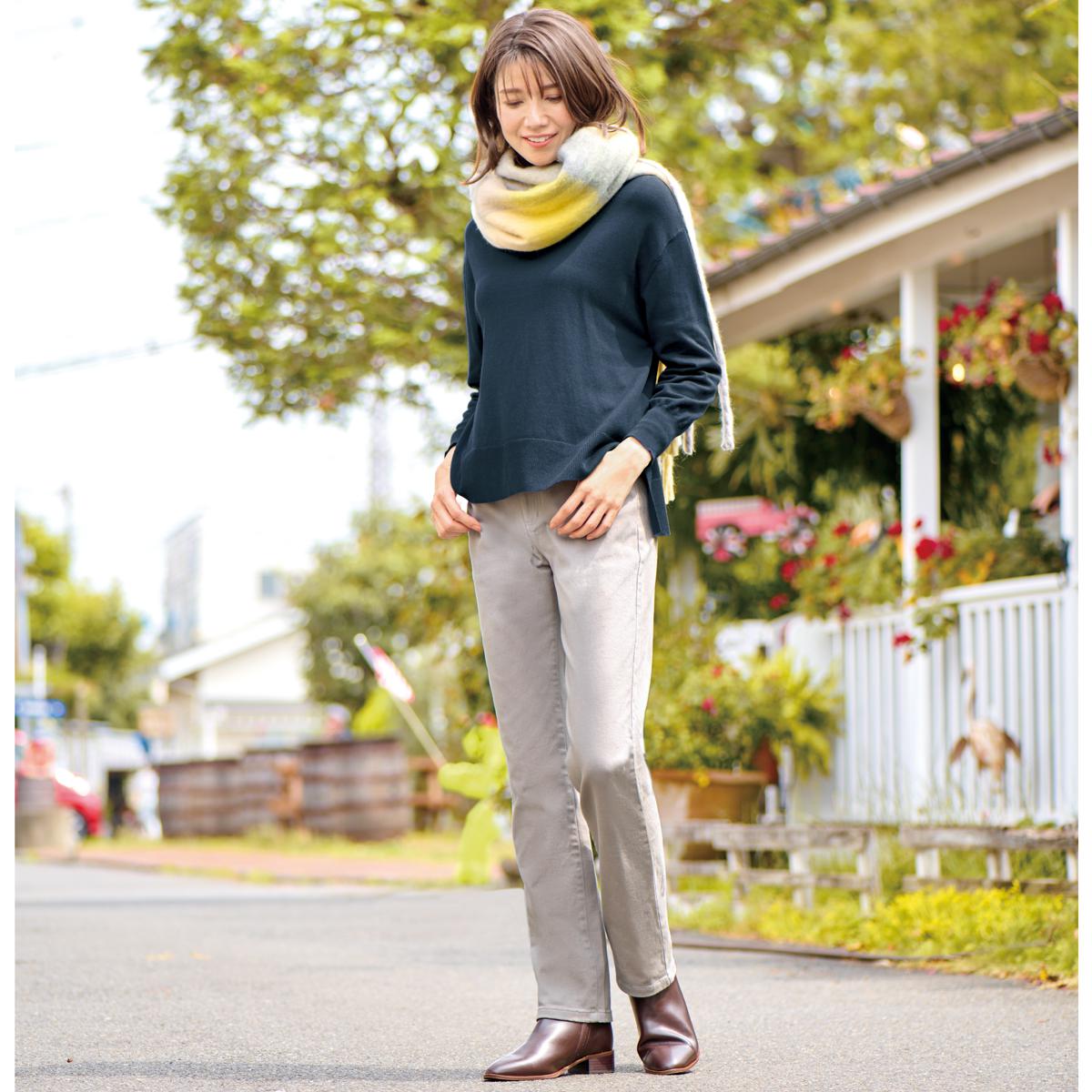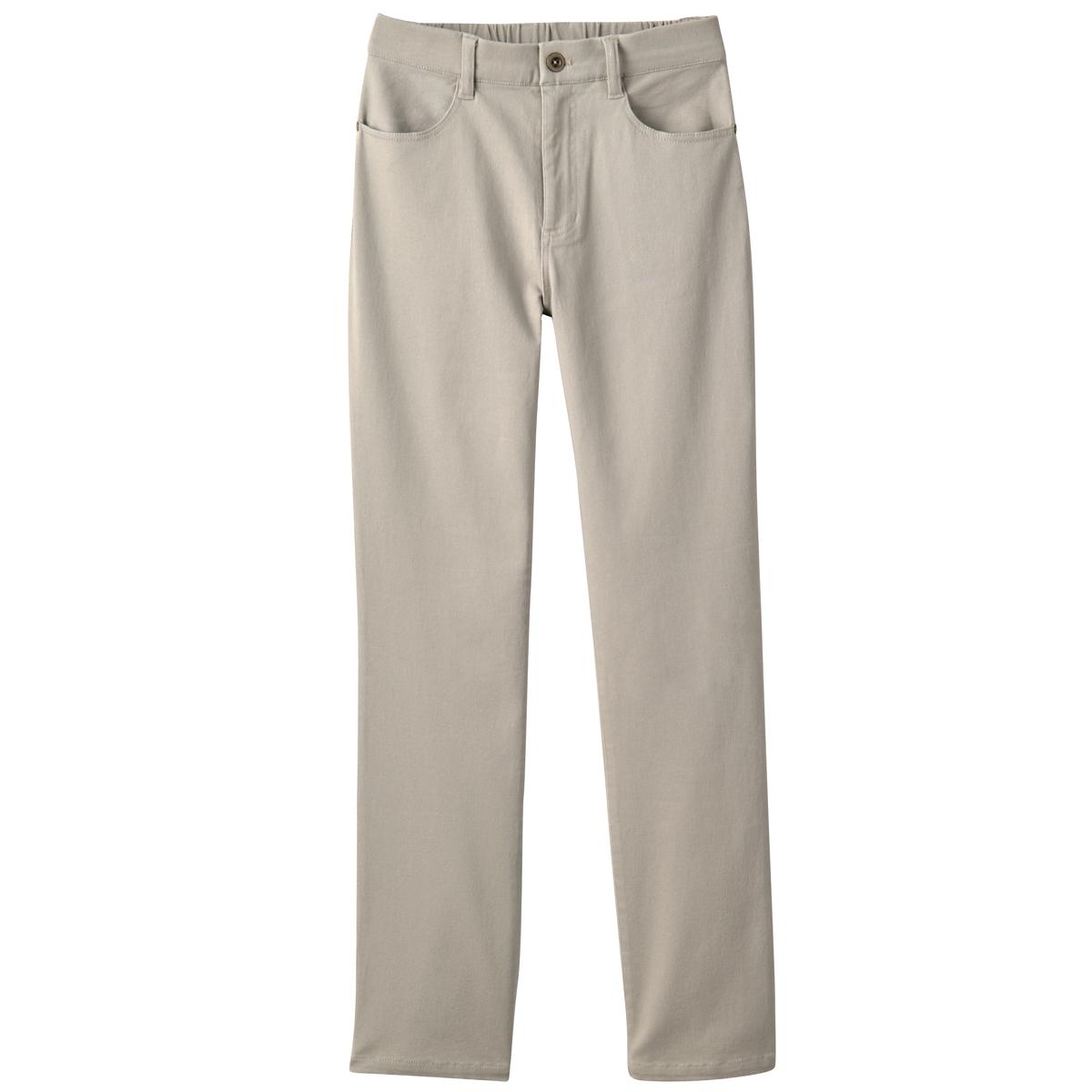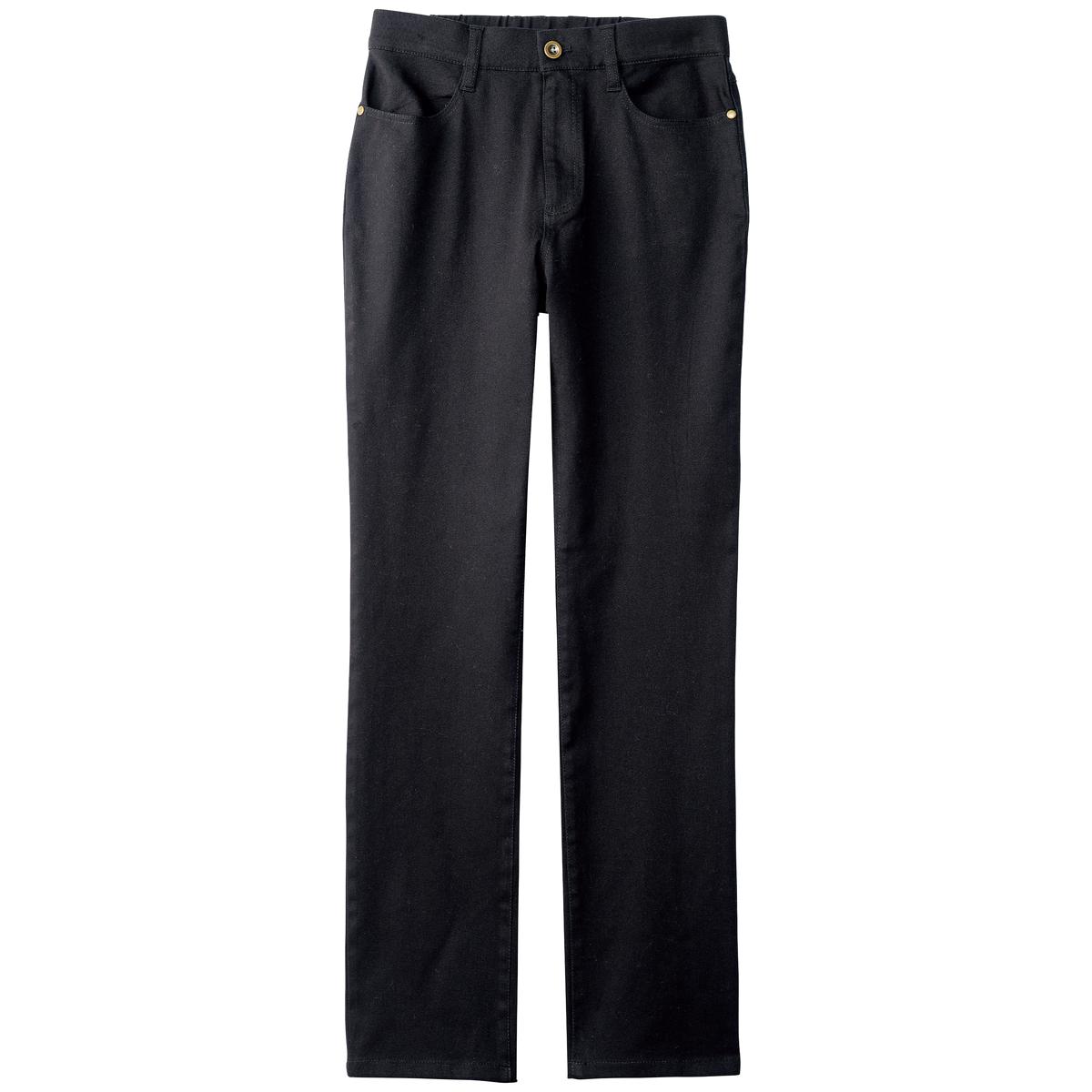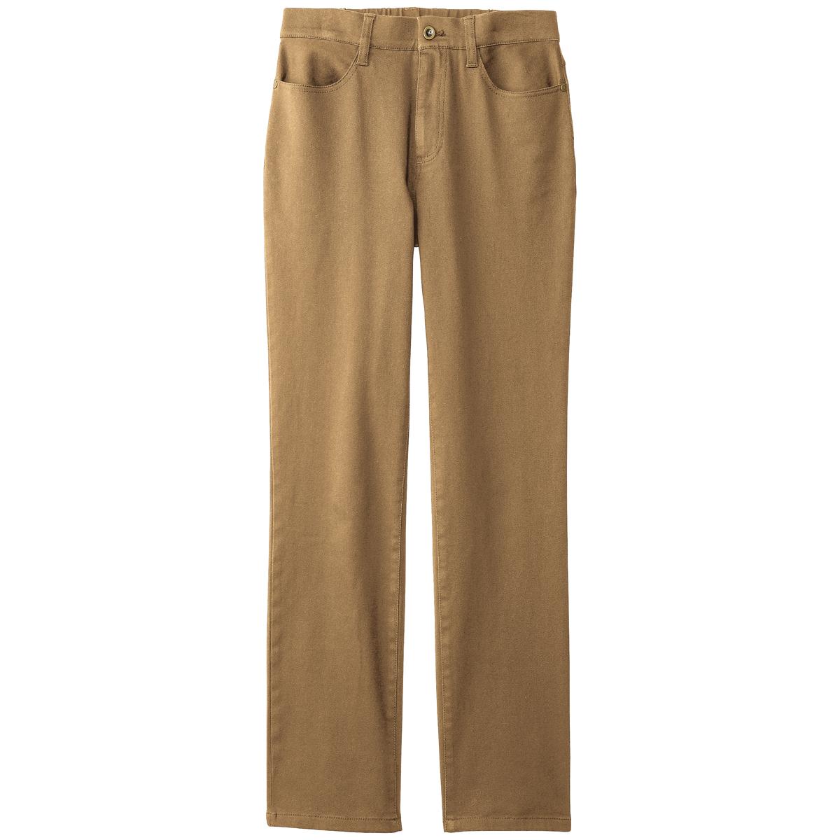 -お買い得ポイント-どんなトップスにも合わせやすい定番のストレートシルエットです。-デザイン-ウエストは総ゴムで楽ちんなのに、前はフラット、後ろのギャザーも極力抑えてすっきり見えにこだわっています。後ろのポケットを「ハの字」に配置することでヒップアップ見せも叶う!ヨコストレッチが効いているので動きやすく、ファスナーあきなので着脱も楽ちん。-素材特徴-やや厚手で丈夫な綿混ツイル素材に、乾燥機を使っても縮みにくいタンブルドライ加工を施しました。
