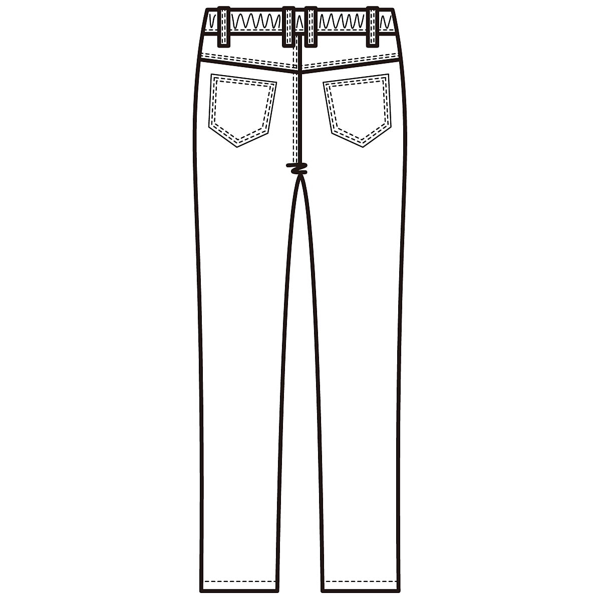 後ろポケットは高めの位置に、さらに中心に対して「ハ」の字に設定することでヒップアップ効果を狙いました。大きめポケットなので小尻見えも。