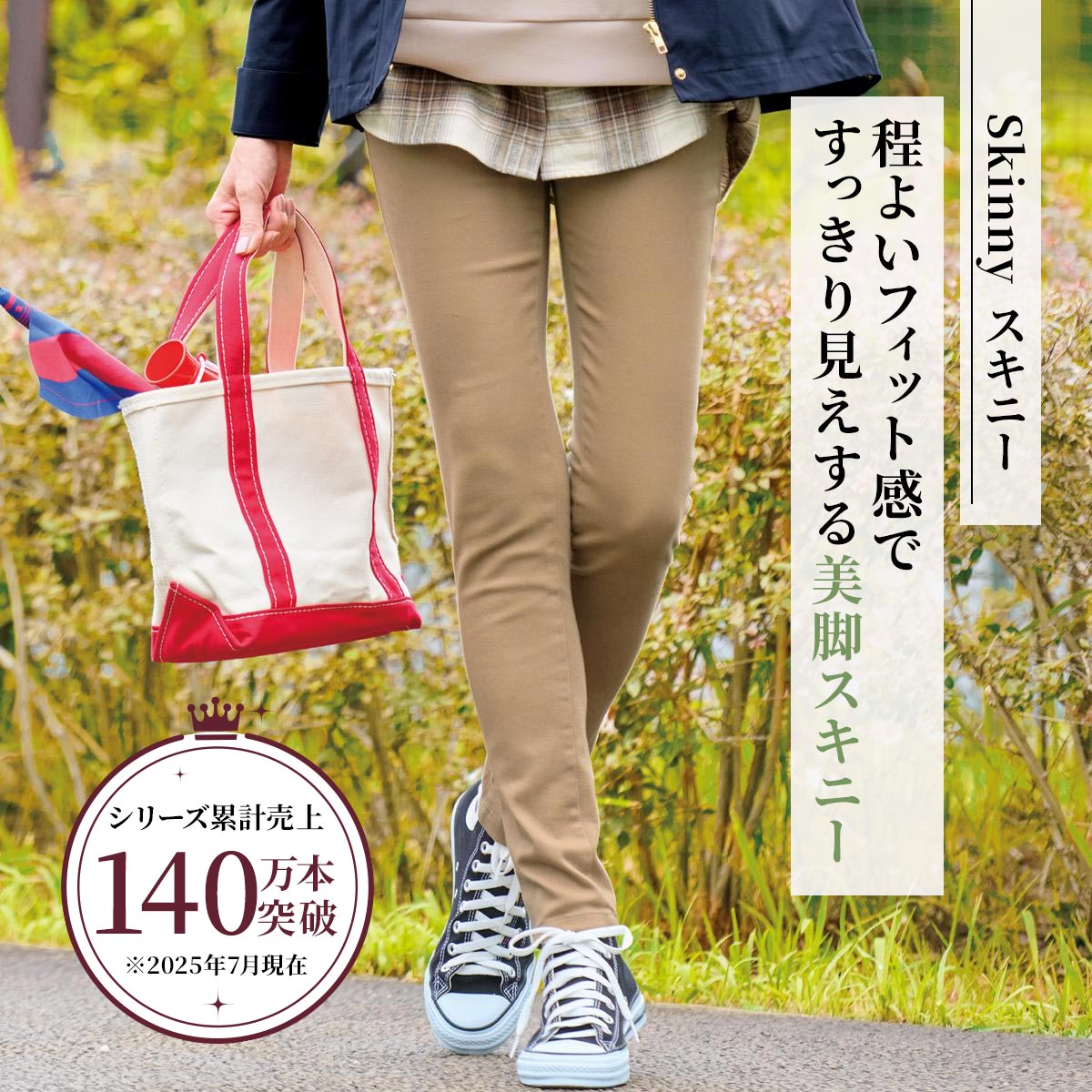 ピタッとし過ぎず、動きやすく脚をほっそり見せるスキニーシルエット。