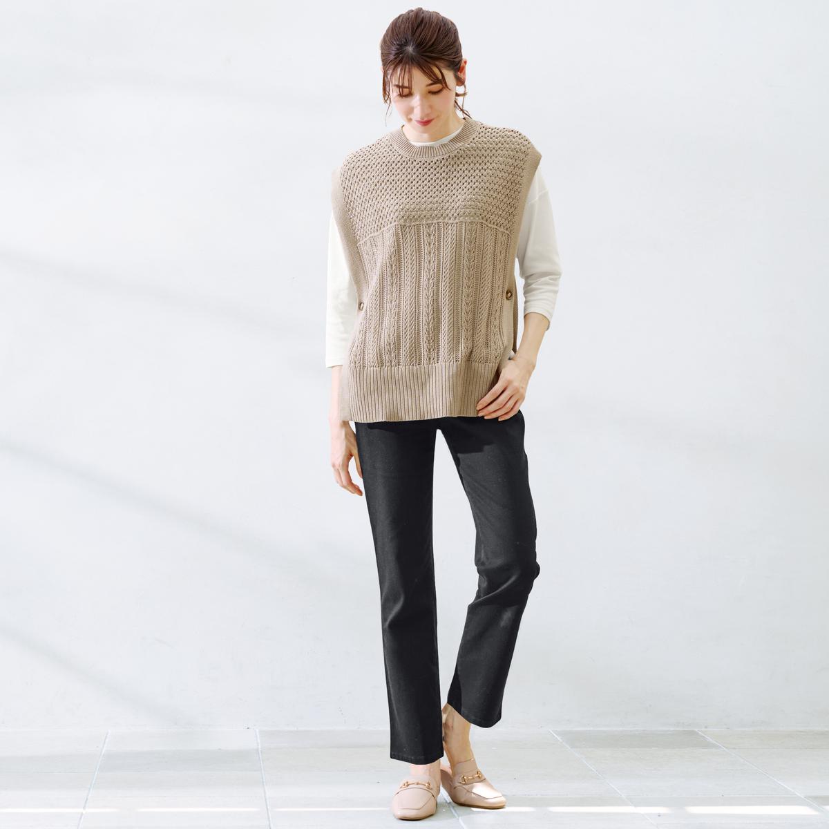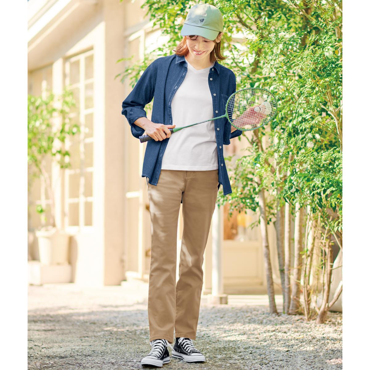 タンブルドライストレートパンツ(ストレッチ・乾燥機OK・毎日パンツ・綿混・UVカット・静電気がたまりにくい)