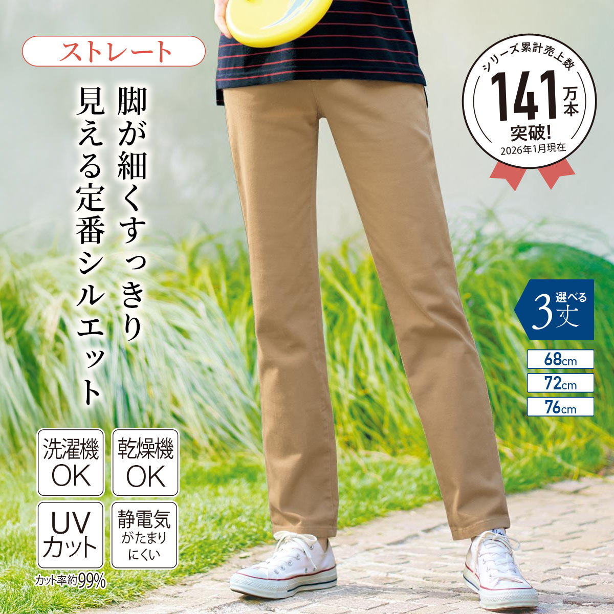 タンブルドライストレートパンツ(ストレッチ・乾燥機OK・毎日パンツ・綿混・UVカット・静電気がたまりにくい)