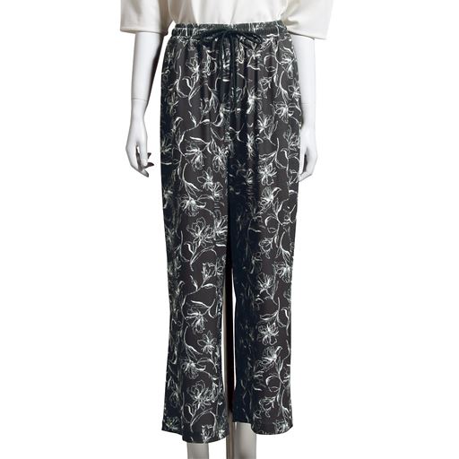 ーお買い得ポイントー柄物もボトムからなら挑戦しやすい!華やかな柄パンツでコーディネートが一気に華やぎます。ーデザインーゆったりしたシルエットと総ゴム仕様で動きやすくラクチンです。ー素材特徴ー肌に触れた瞬間にひんやり心地良い素材を使用しています。