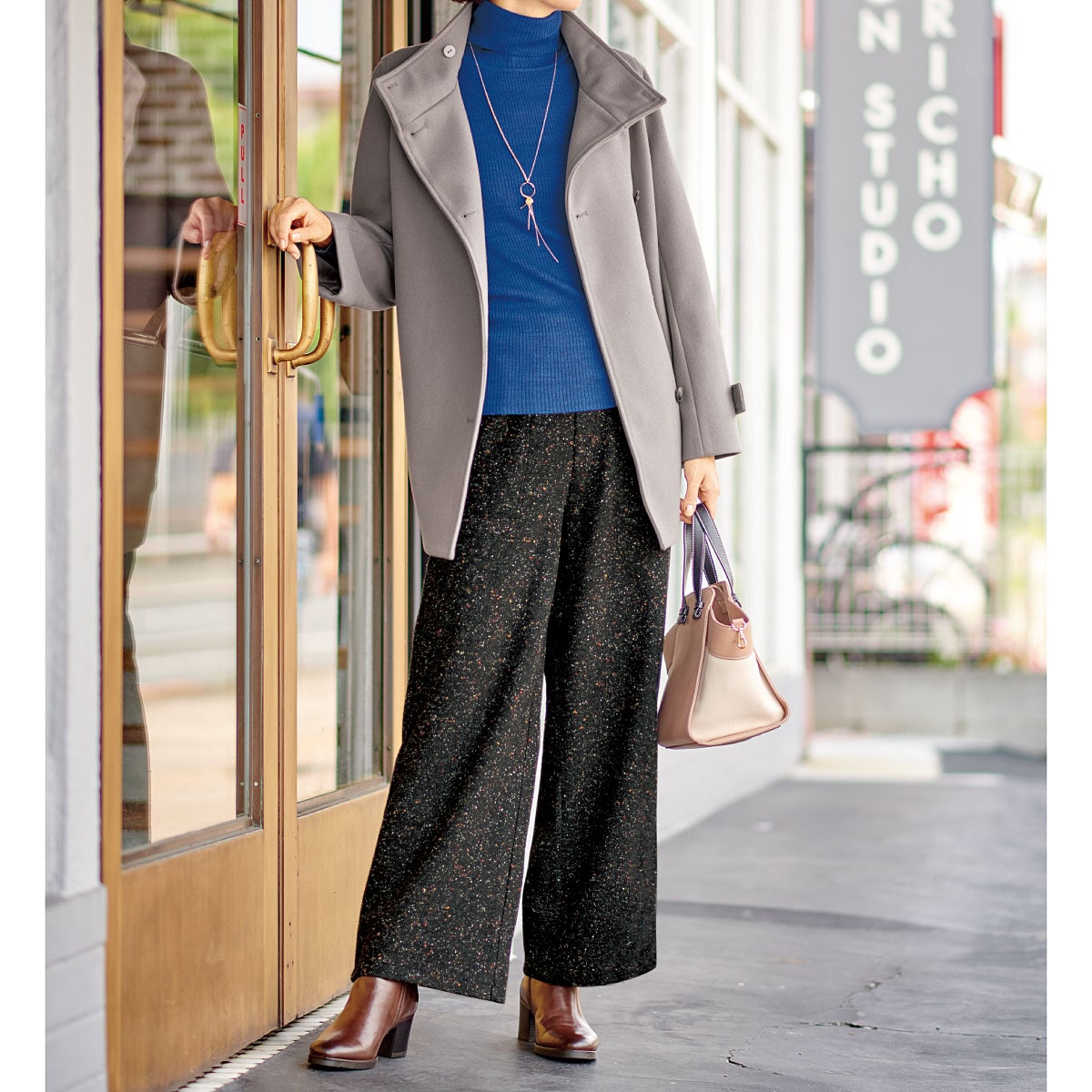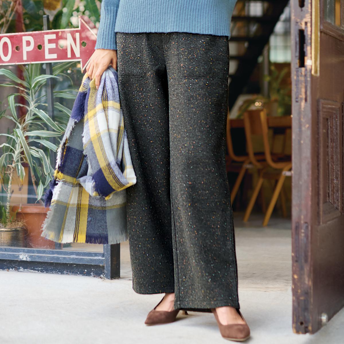 カラーネップツイード調ワイドパンツ