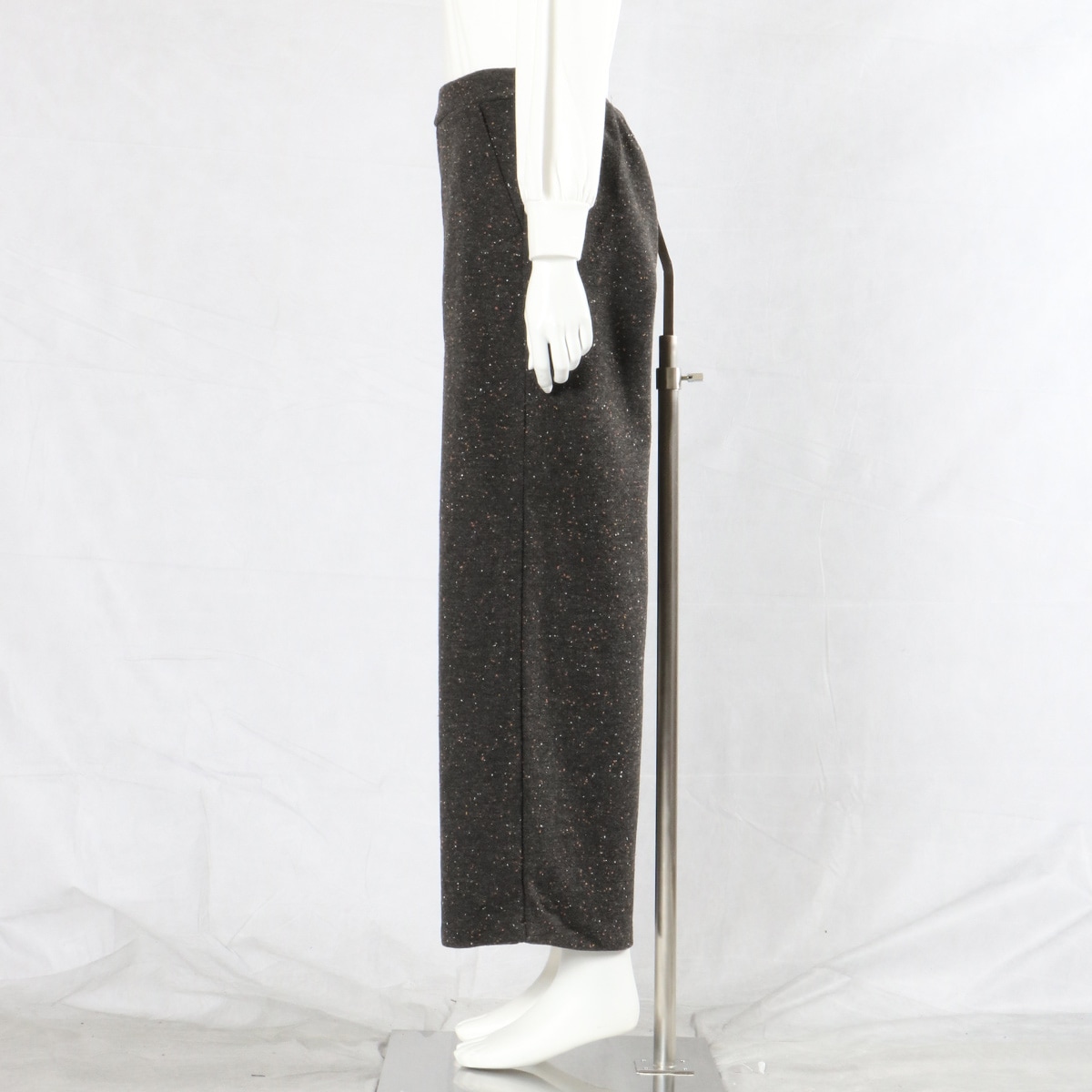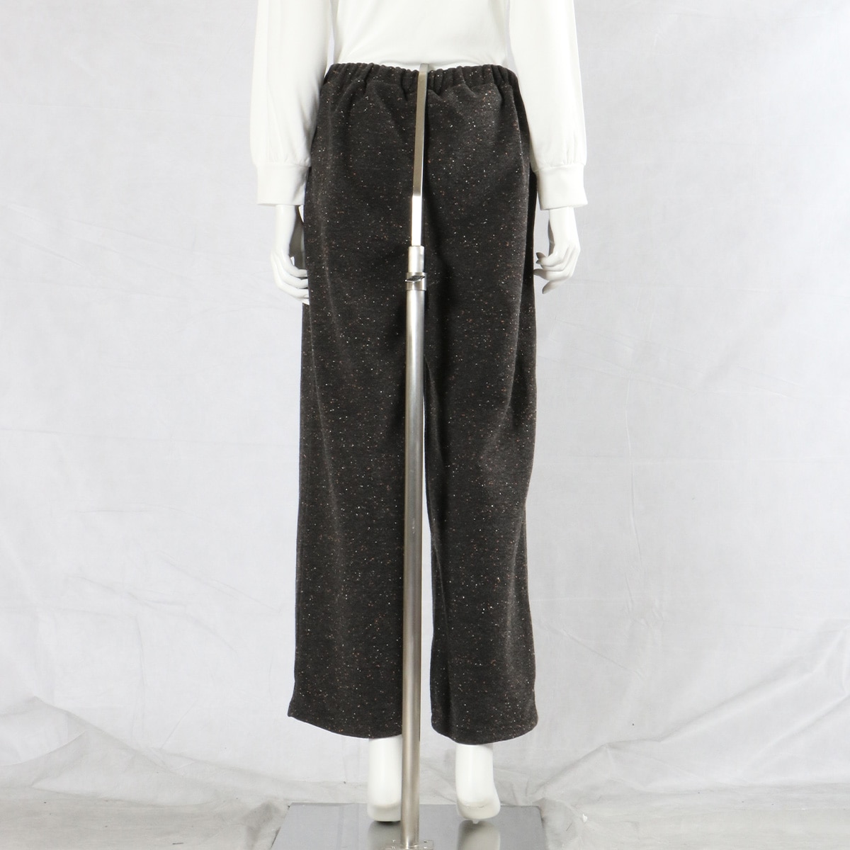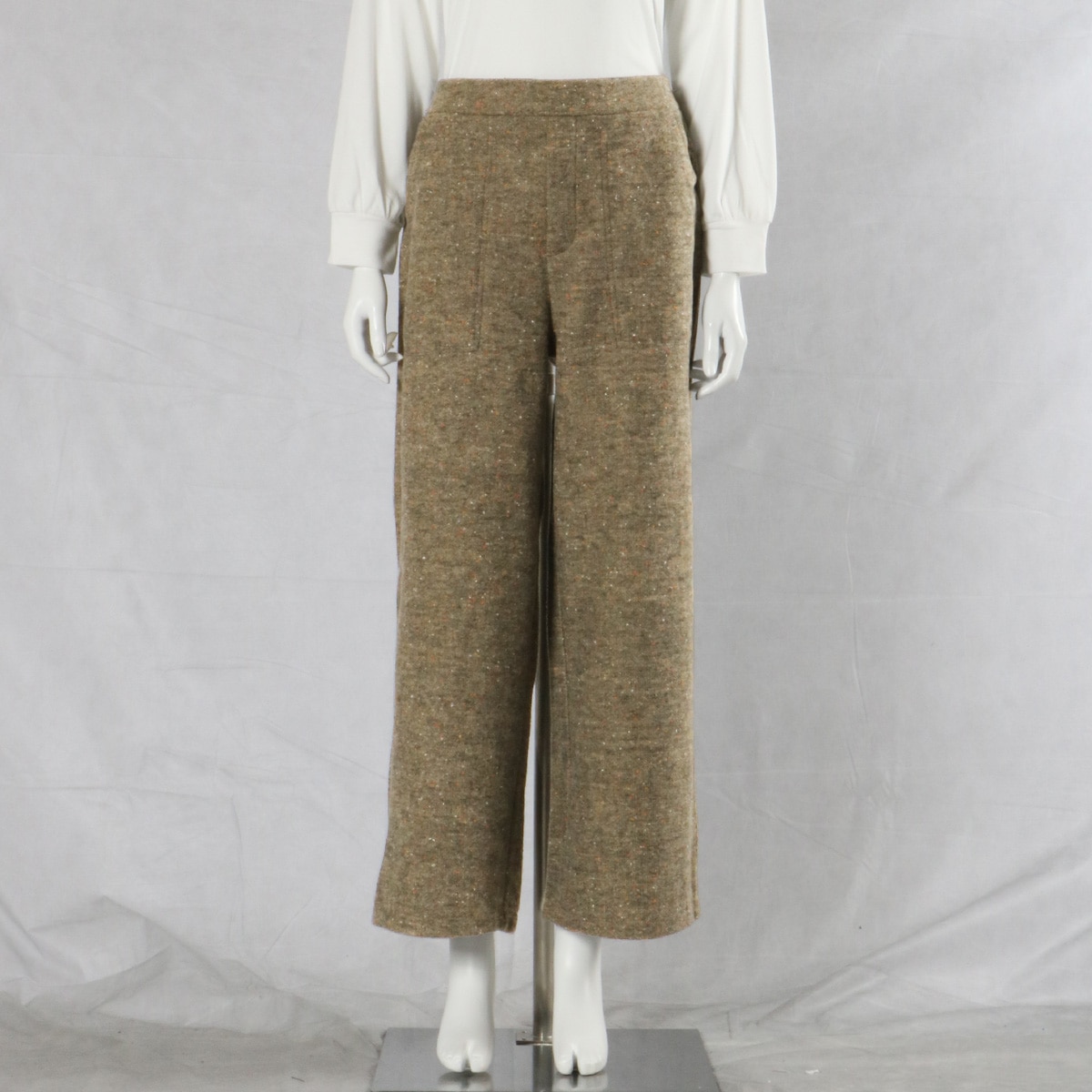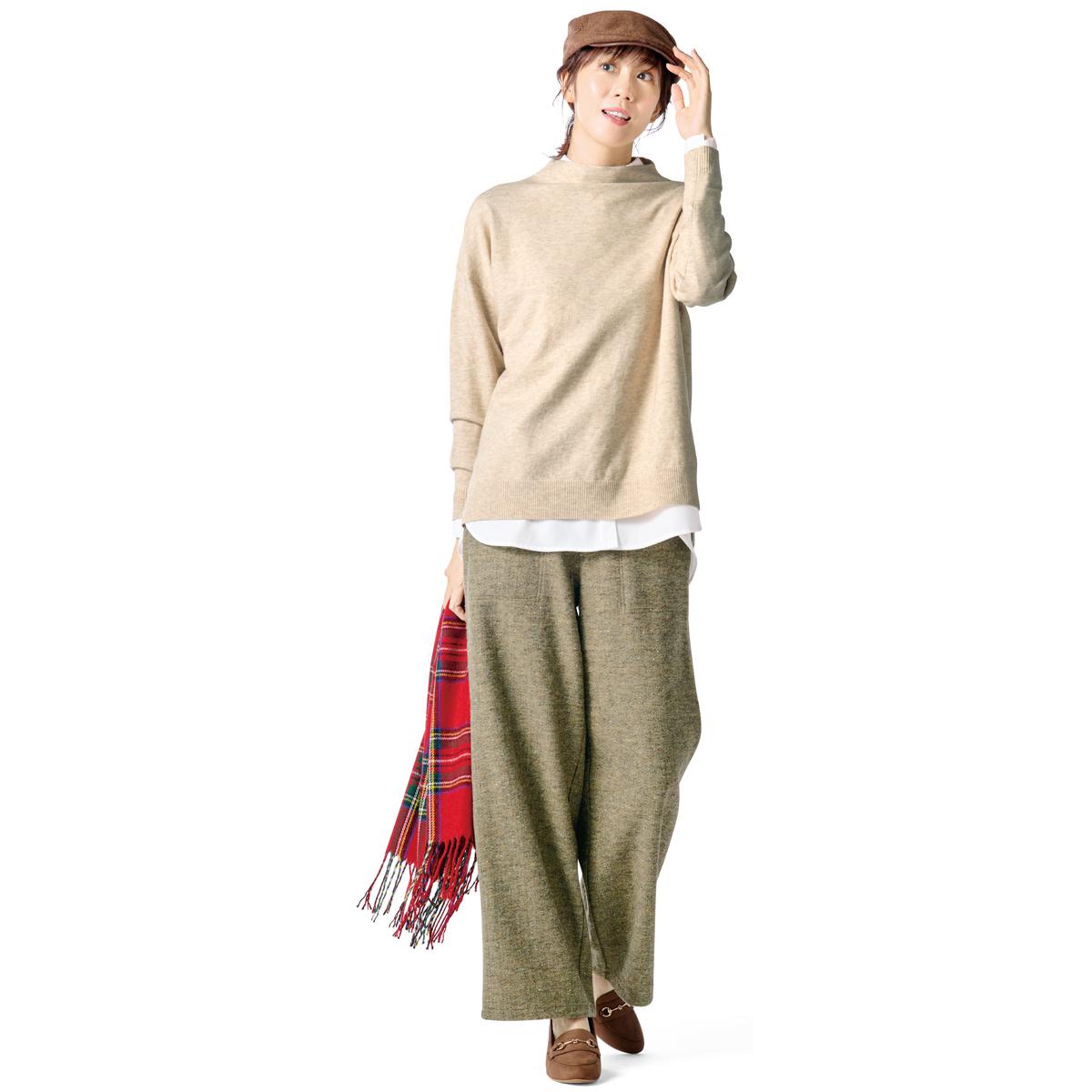-お買い得ポイント-冬映えする上質感のあるツイード調。ネップが表情豊かなアクセントとなり、上品なカジュアル感を演出できる点が魅力です。-デザイン-広がりを抑えたワイドシルエットが上品な印象を醸し出しています。ウエストは総ゴム仕様なので、ラクに着こなせます。-素材特徴-暖かみのあるカラーネップツイード調カットソー。ストレッチ性があって動きやすく、長時間座っていてもしわが気になりにくいのもうれしいポイント。