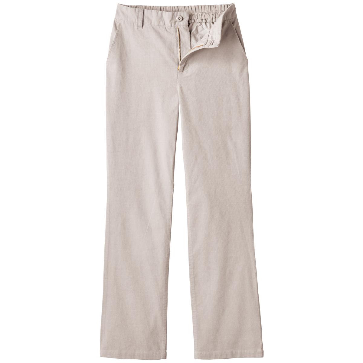 -お買い得ポイント-シャツやチュニックと好相性。着まわし力で差がつくストレートパンツ。-デザイン-ウエスト後ろゴムでリラックスしたはき心地なのにキレイ見えするのも魅力です。-素材特徴-ストレッチ素材で程よく身体にフィットするストレートシルエット。コーデュロイを細うねで仕上げ、洗い加工を施しました。やわらかくナチュラルな風合いできれい見えします。