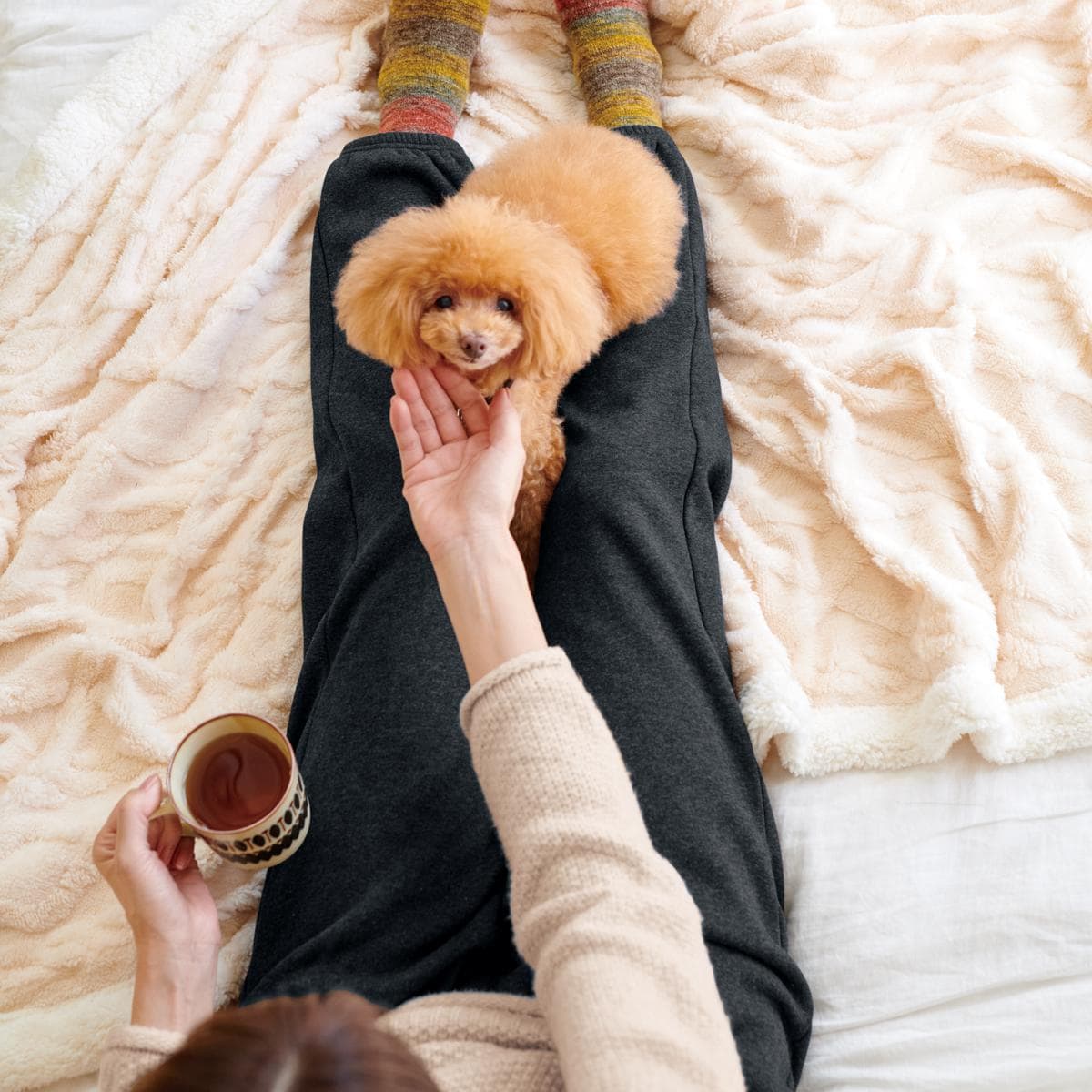ふんわり裏起毛ではいた瞬間ヒヤッとしない。毛足が長く密度の高いシャギー素材。毛布みたいにあたたかく防寒対策におすすめ!