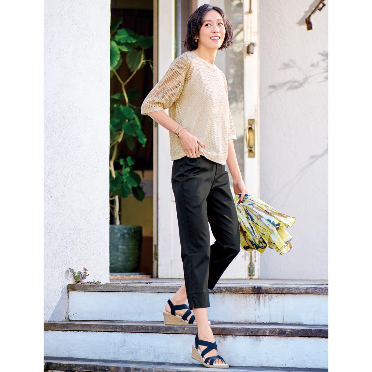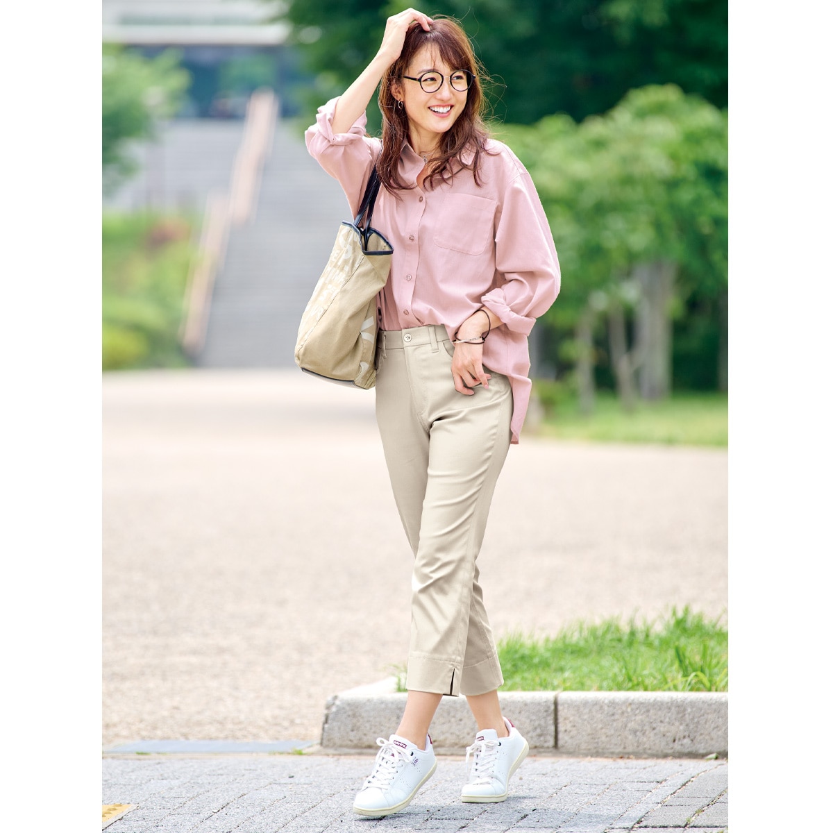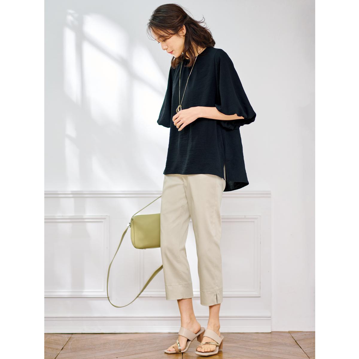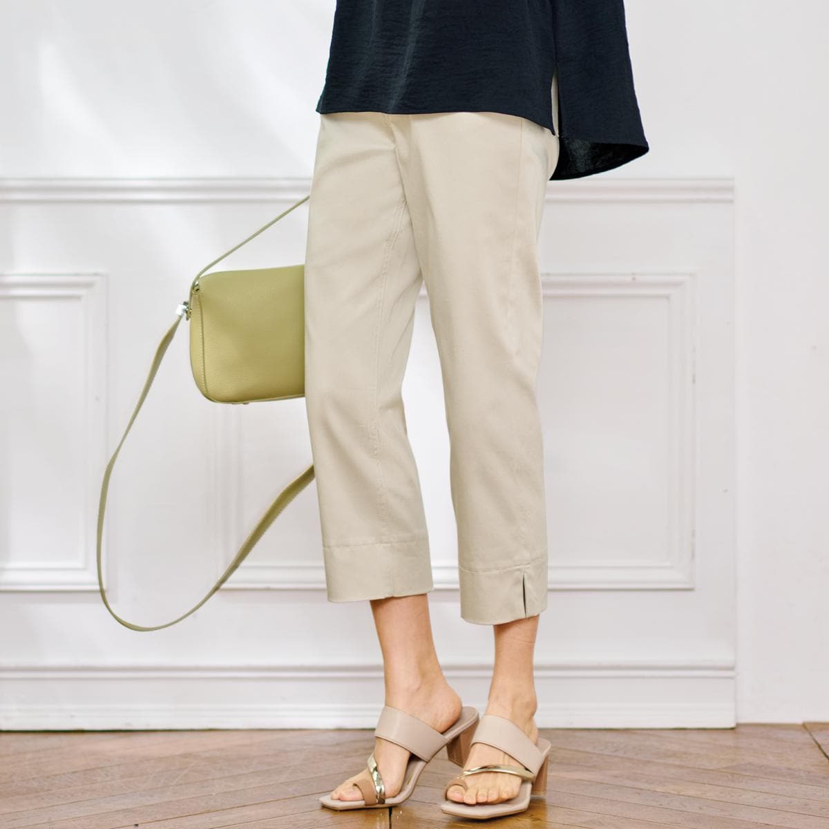 -お買い得ポイント-しなやかなはき心地でアクティブな動きにも快適にフィット。大人を美しく見せるシルエットで幅広いコーデが楽しめます。-デザイン-クロップド丈&サイドスリットで抜け感たっぷり。ウエストは総ゴム仕様でラクラク。-素材特徴-微光沢で上品見えする綿サテン生地なのに驚きの伸び感!