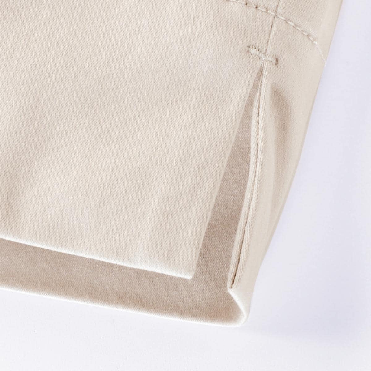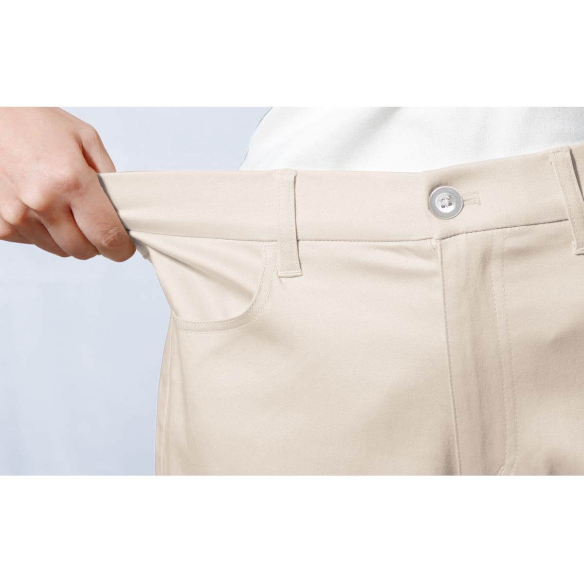 表面に微光沢感があり、きれいめな印象を叶える綿混素材のストレッチ生地を使用。