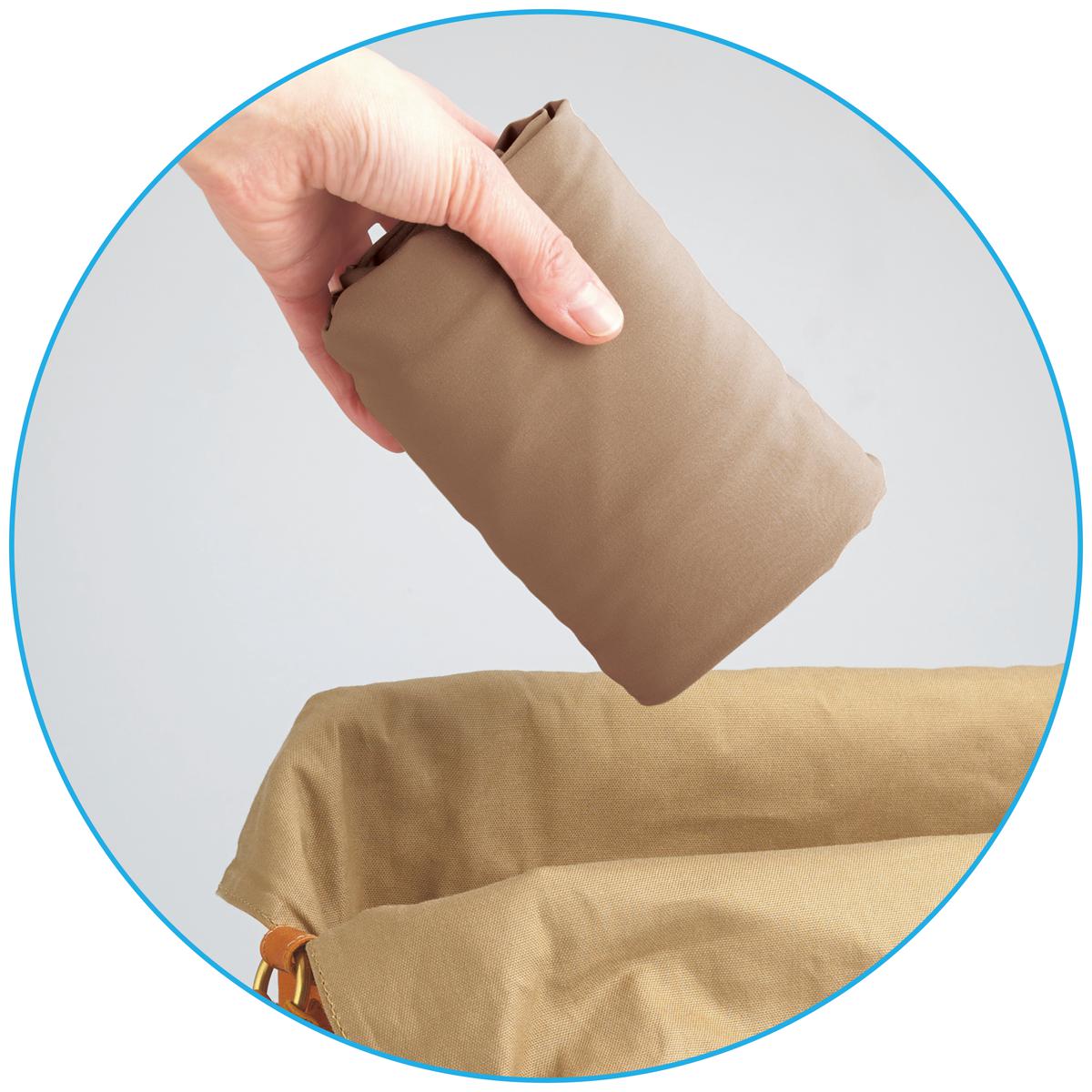 たたむと500mlのペットボトルよりコンパクト。バッグに入れても場所をとらず旅行にも便利。