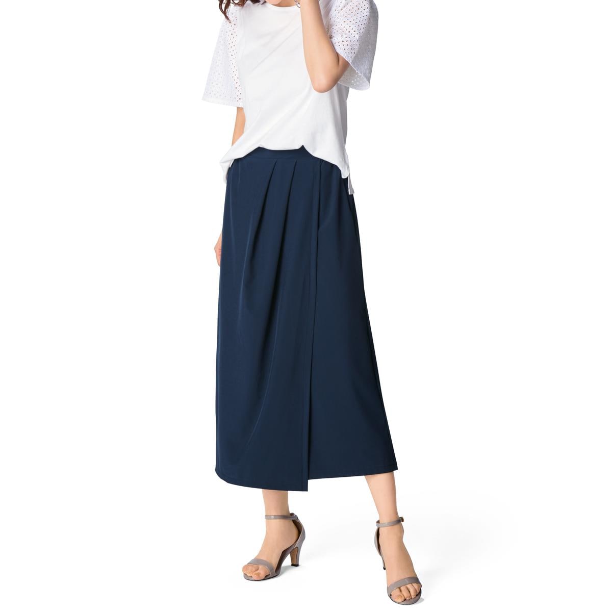 -お買い得ポイント-脚のラインを拾わずまるでスカートのよう!多彩なコーデを楽しんで。-デザイン-内側は股上深めのキュロットパンツで動きやすくラク。ウエストは総ゴム仕様なので、体型を気にせず、着用いただけます。-素材特徴-接触冷感・UVカット・帯電防止の多機能ストレッチ素材。吸汗速乾機能もあって、汗をかいてもすぐ乾くからサラッサラ!