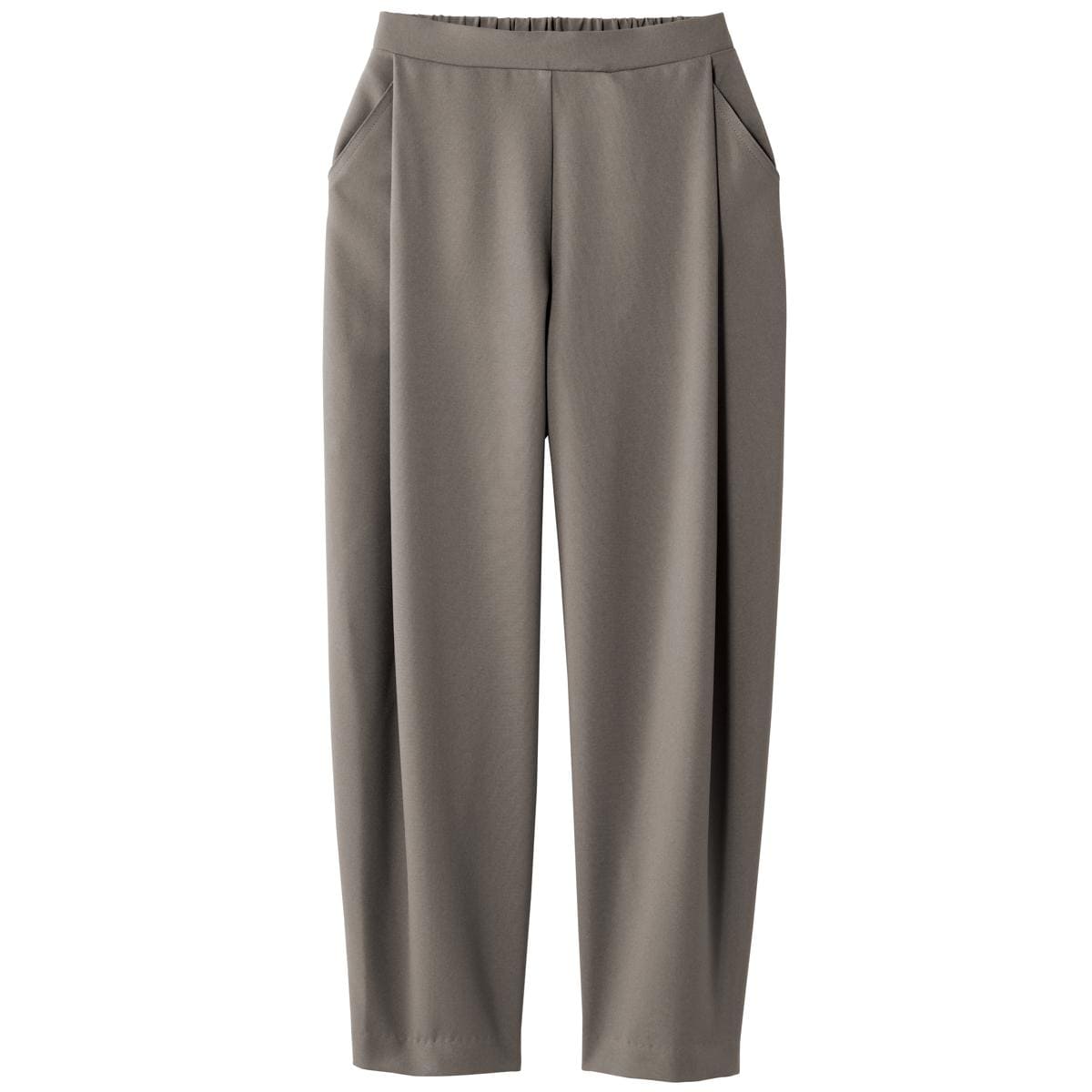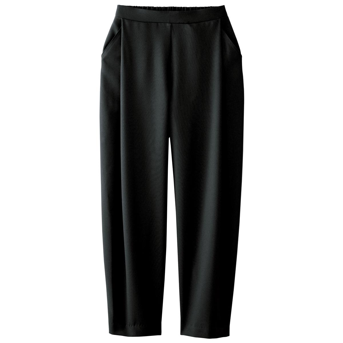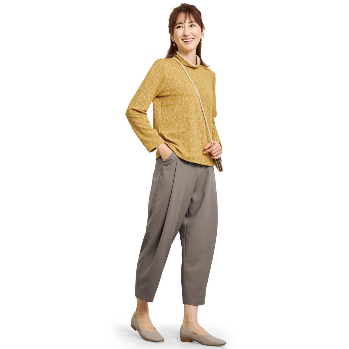 ウエストもラクすっきり!両サイドに寄せた大きめのタックで着心地ラク。ストンと落ちるンルエットでお腹まわりをすっきり見せます