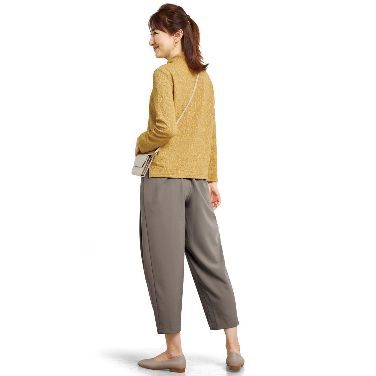 ウエストは総ゴムで締め付け感がないのに、だぶつかずすっきり見えます。