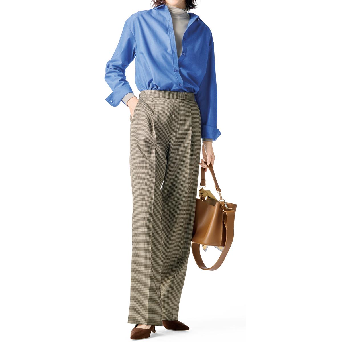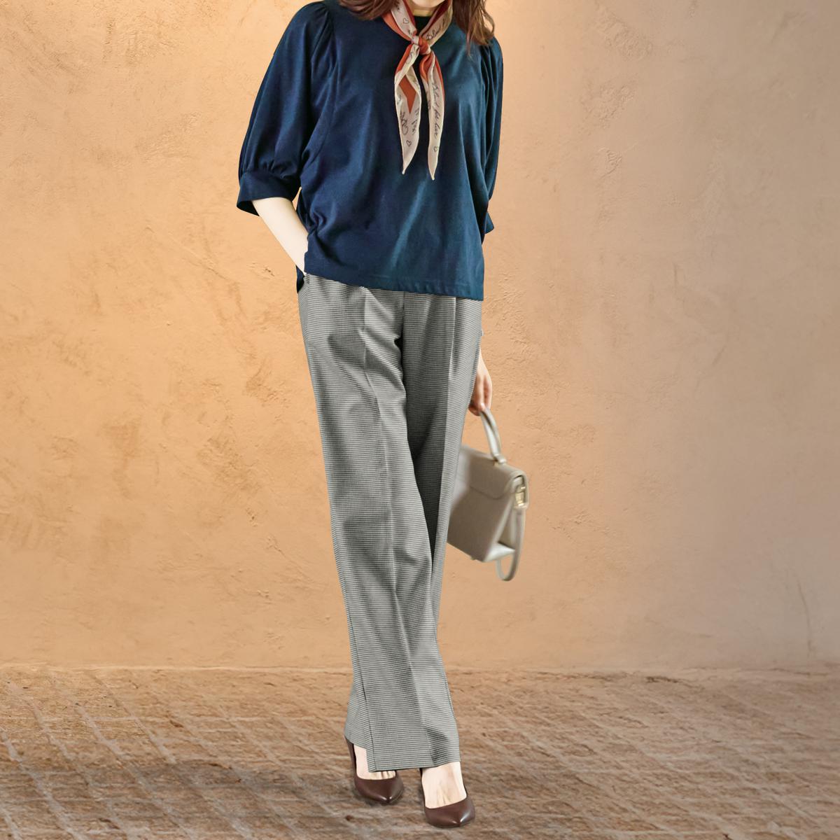 -お買い得ポイント-色や柄で季節を先取りしながらサラッと軽やかなはき心地のボトムスでおしゃれ気分を高められます。-デザイン-程よいワイド感とセンタープレスで足長効果。きちんと見えするのでオン、オフ問わず着回せます。ウエストは後ろゴム仕様で、サイズ調整ラクラク。-素材特徴-独特の光沢や風合いがあり、型崩れしにくいので、お手入れが簡単です。