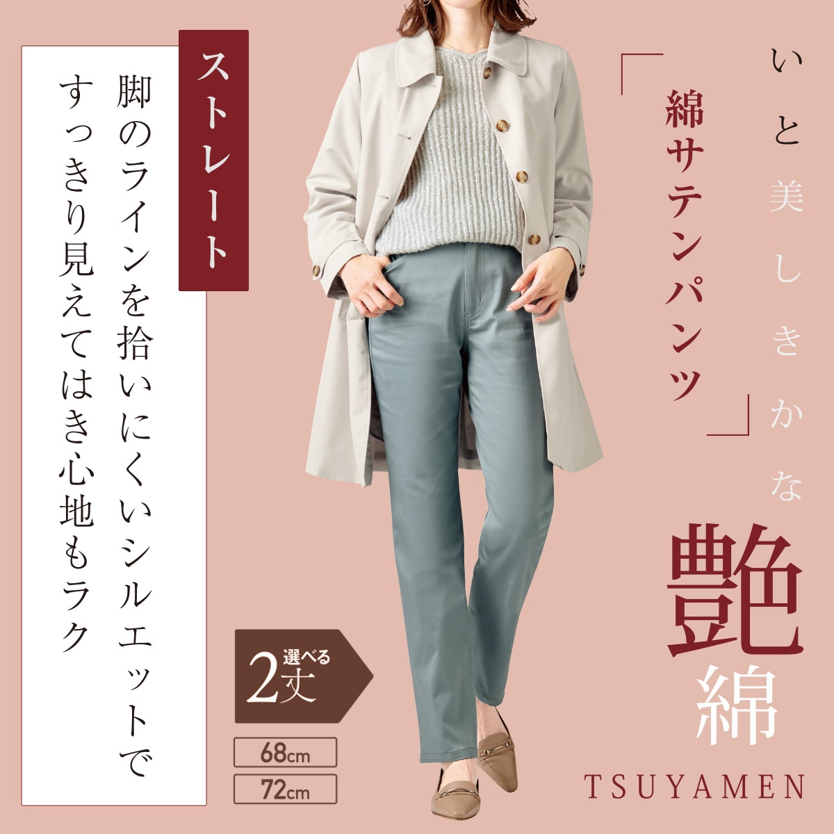 綿サテンストレッチストレートパンツ
