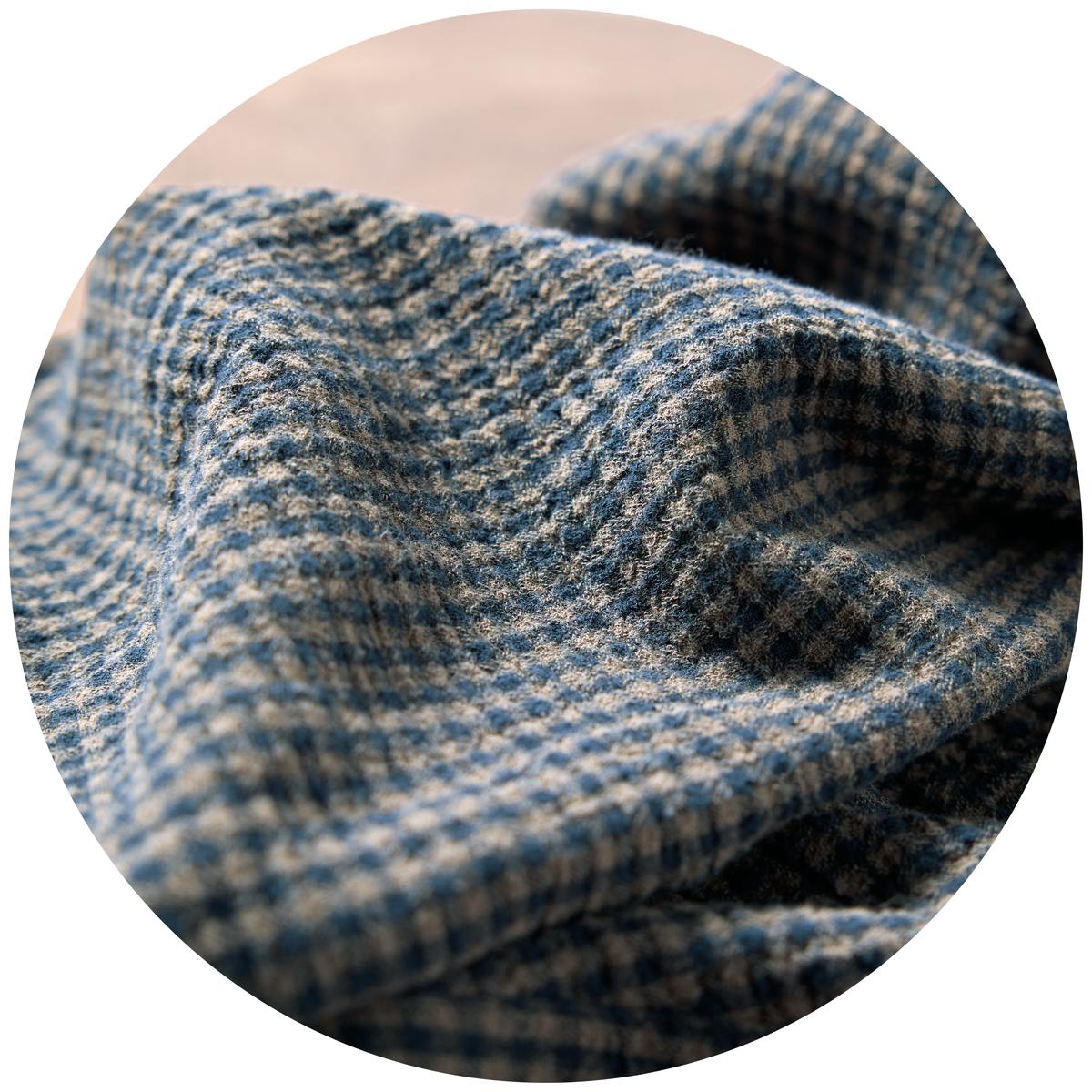 着るたびに肌にするりと馴染んでいく綿100%の天然素材。ふんわり暖かい、しっかりした厚みのダブルガーゼ生地。