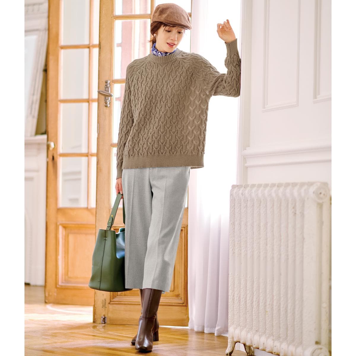 -お買い得ポイント-あたたかみのあるクラシカル調な生地のパンツなら上品感がたちまちアップ。定番のトップスと合わせてもワンランク上のトラッドテイストに仕上がります。-デザイン-きちんと見えするセンタープレス入りクロップド丈でブーツスタイルもスマートに決まるデザインです。ウェスト後ろがゴム仕様になっていることで、はき心地も良く快適。-素材特徴-両面を起毛させた、あたたかみのある素材。肌あたりもふんわり優しく、温もり感じるはき心地が特徴です。