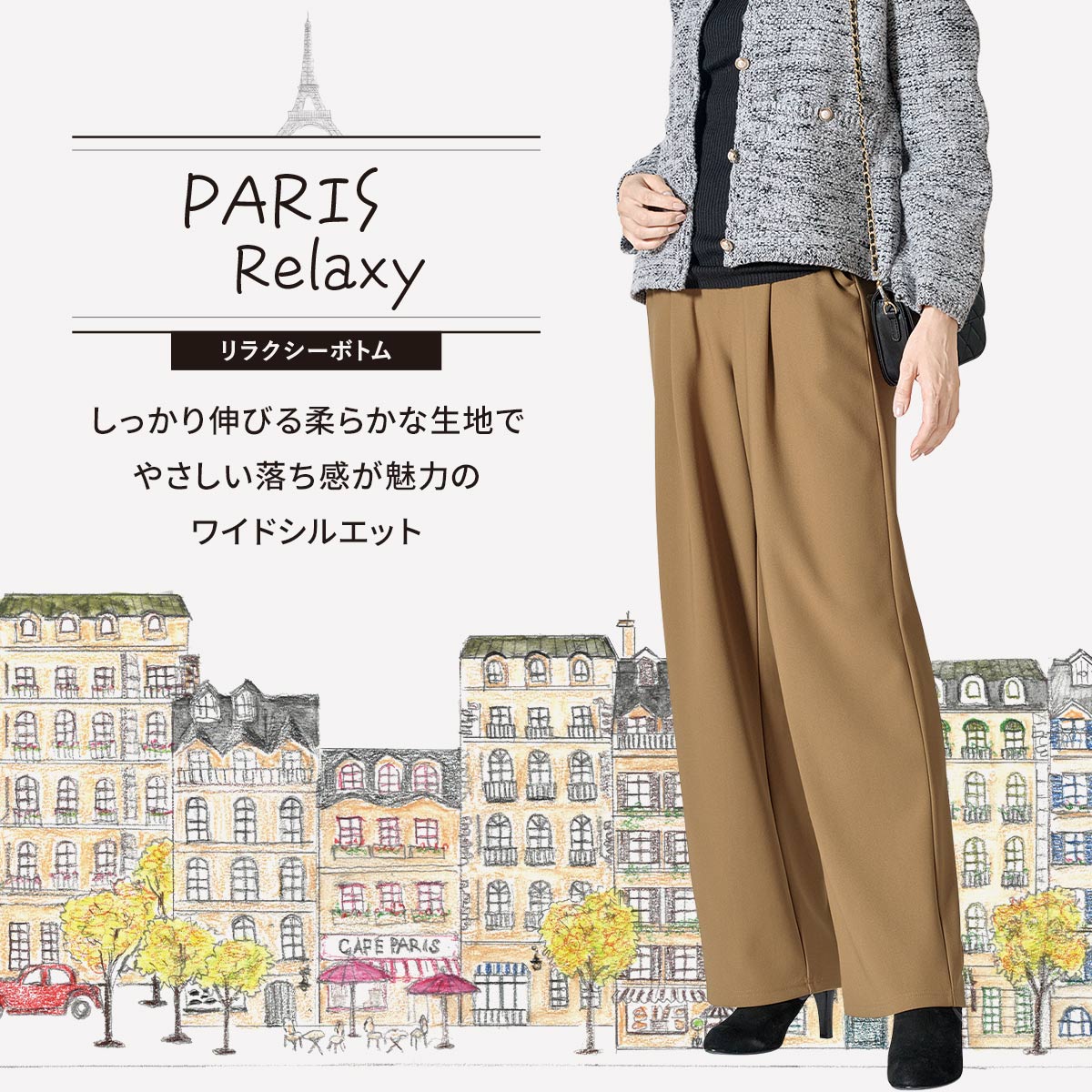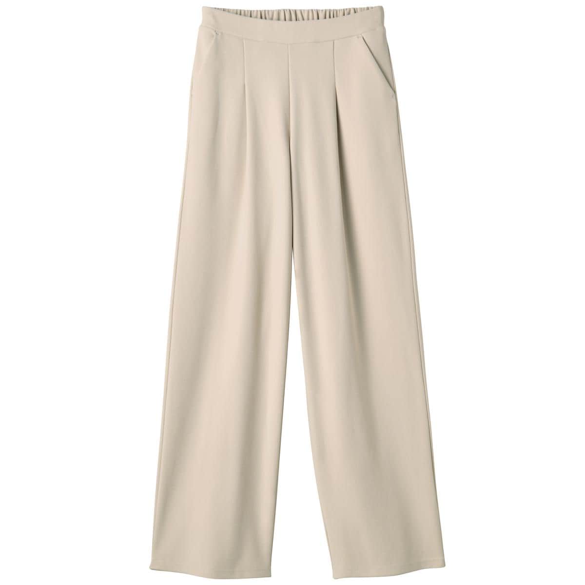 -お買い得ポイント-しっかり伸びる柔らかな生地でやさしい落ち感が魅力のワイドシルエットです。-デザイン-ベルトレスなので腰回りがすっきりと見え、脚長効果もあります。ギャザーの寄らないウエストですっきり見えですが、総ゴム仕様なのでフィットしながらも楽な着用感です。-素材特徴-ハリ感がありはき心地の良いダブルクロス素材。裏起毛であったか。程よくストレッチがきいた素材で窮屈感なく楽ちんです。
