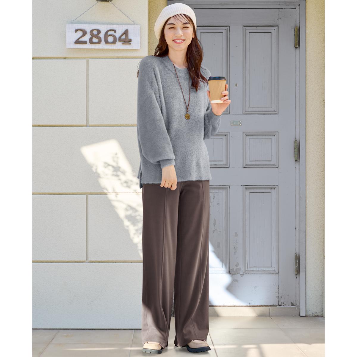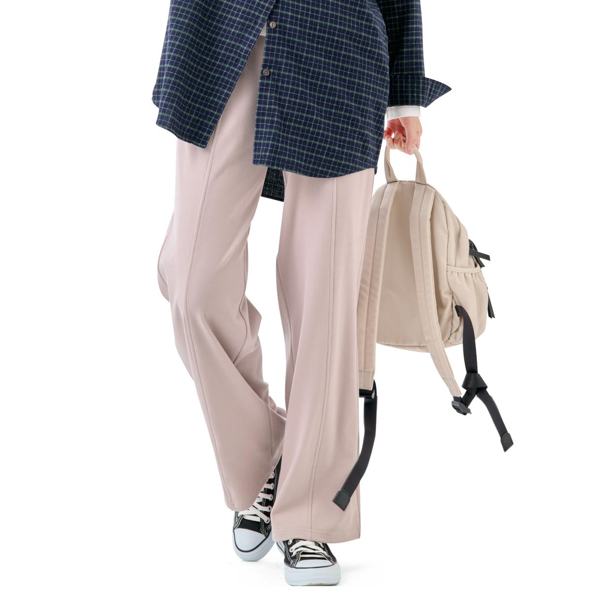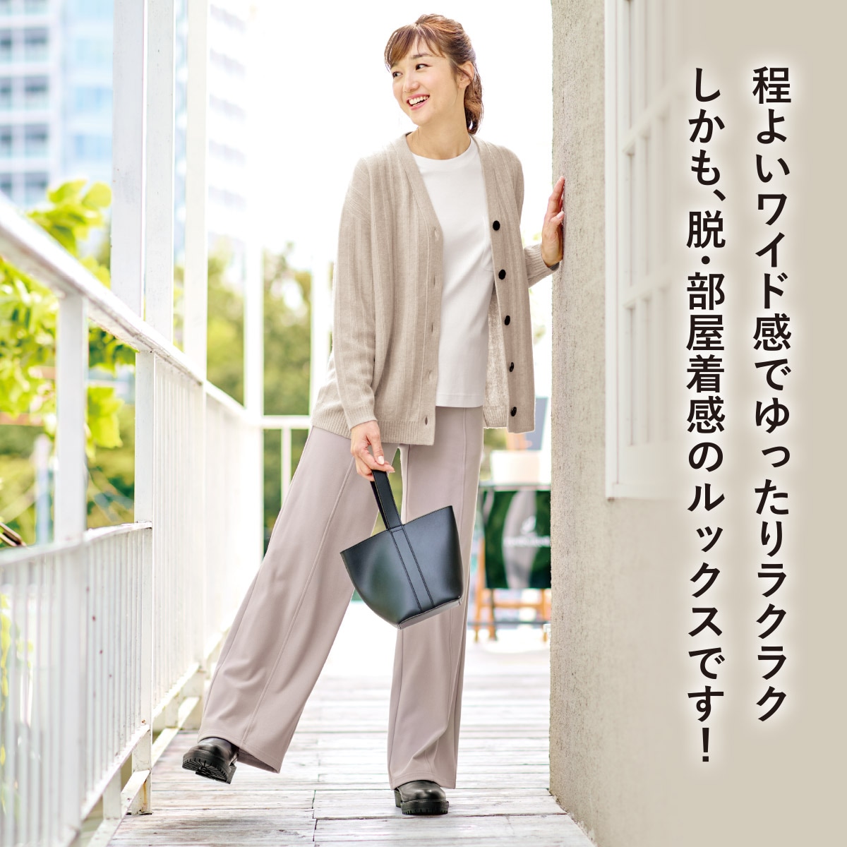-お買い得ポイント-程よいワイド感でゆったりラクラク。しかも、脱・部屋着感のルックスです!-デザイン-センター切り替えデザインで見た目すっきり。総ゴム仕様なのでウエストラクラク。ちょっとそこまでのお出かけにも◎。-素材特徴-ストレッチ性に優れたマシュマロタッチの生地で柔らかくて快適。