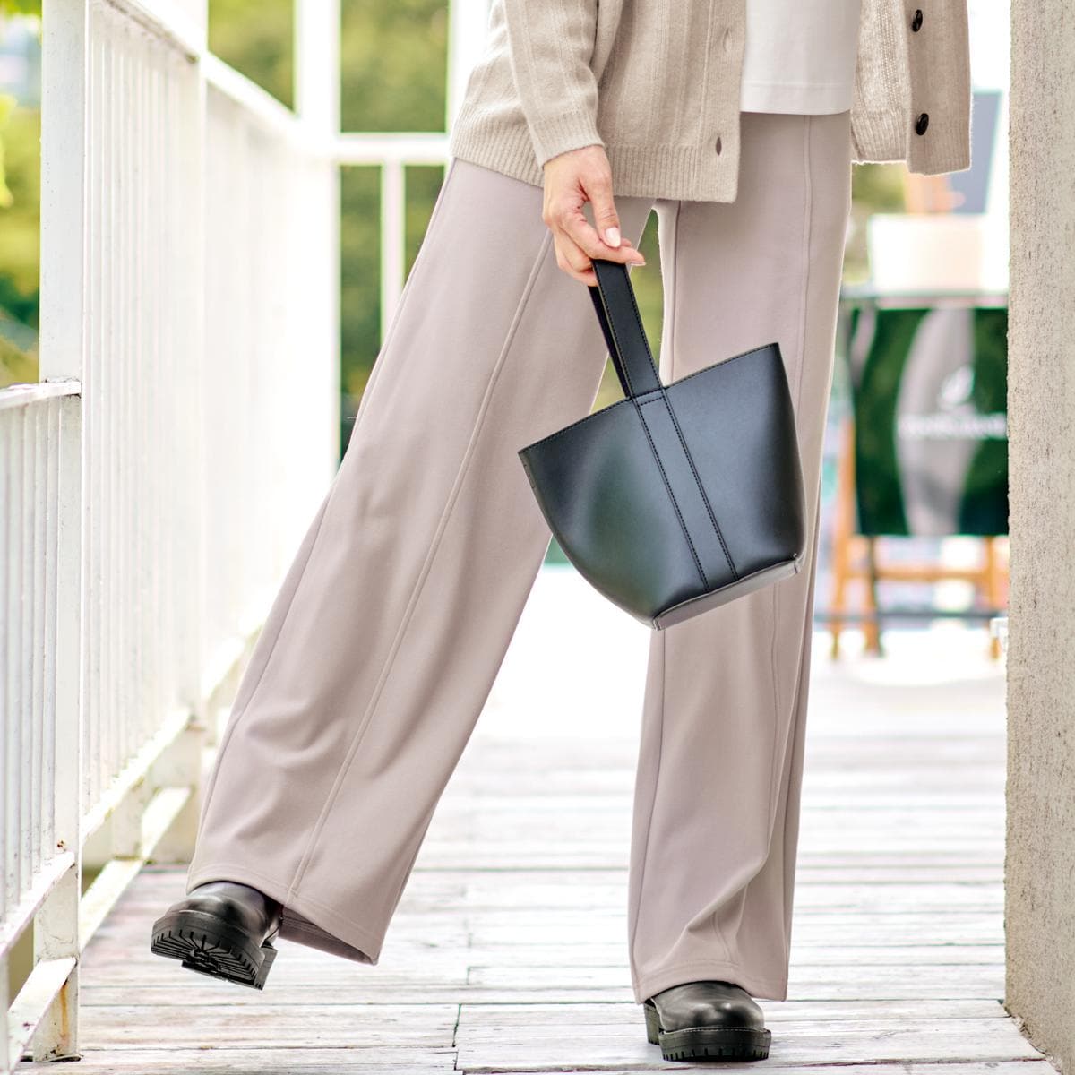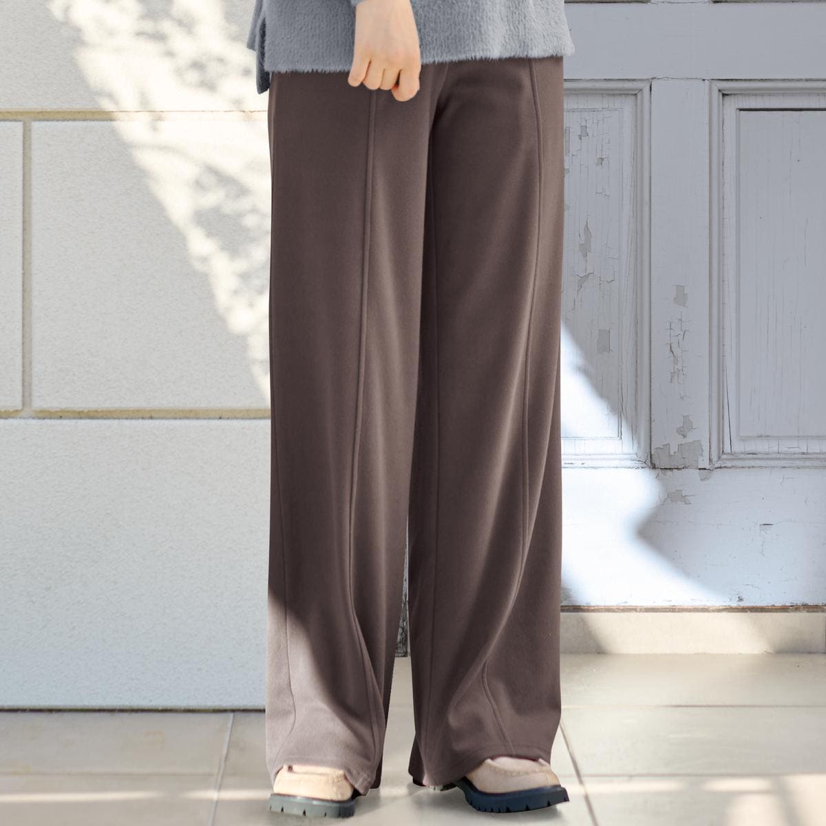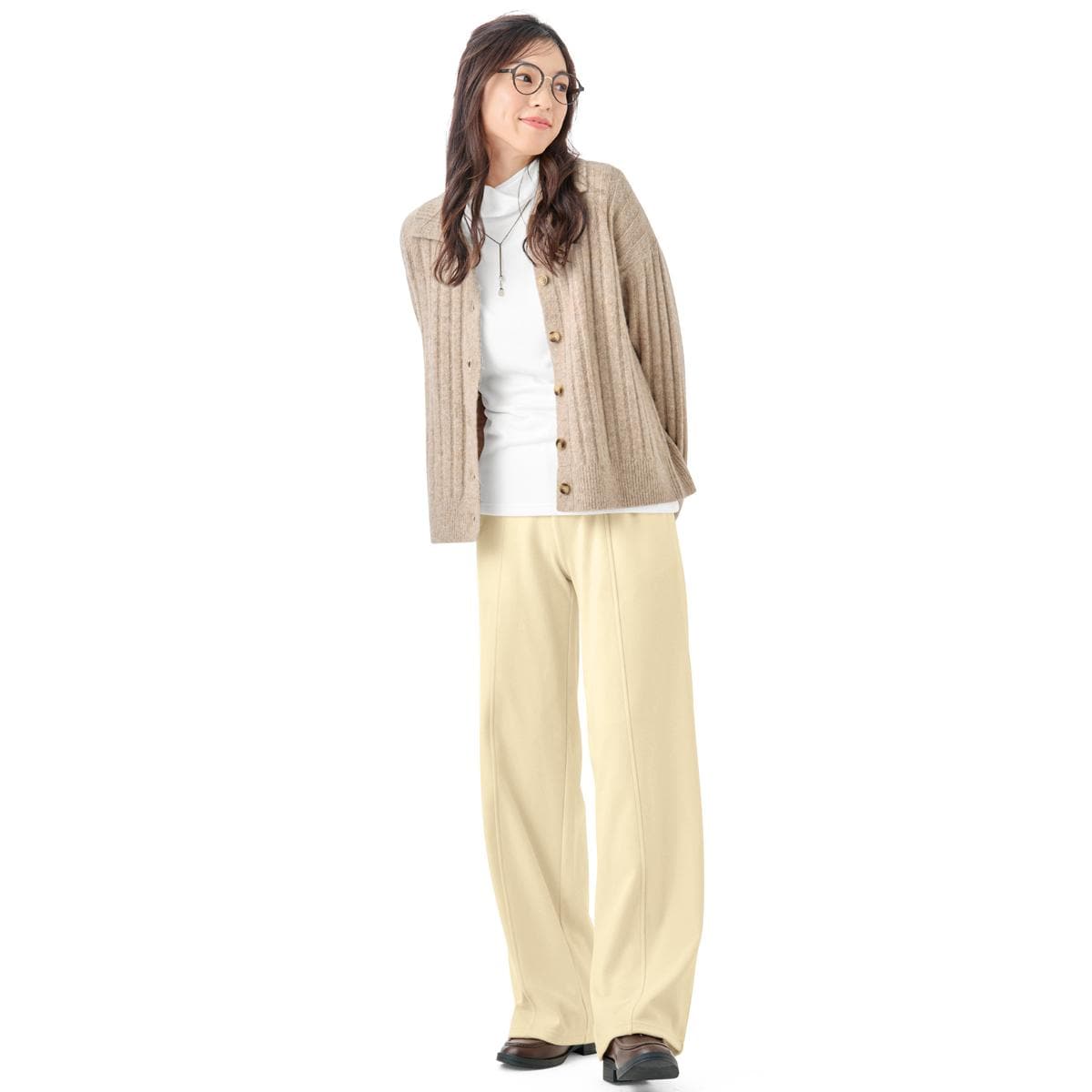-お買い得ポイント-程よいワイド感でゆったりラクラク。しかも、脱・部屋着感のルックスです!-デザイン-センター切り替えデザインで見た目すっきり。総ゴム仕様なのでウエストラクラク。ちょっとそこまでのお出かけにも◎。-素材特徴-ストレッチ性に優れたマシュマロタッチの生地で柔らかくて快適。