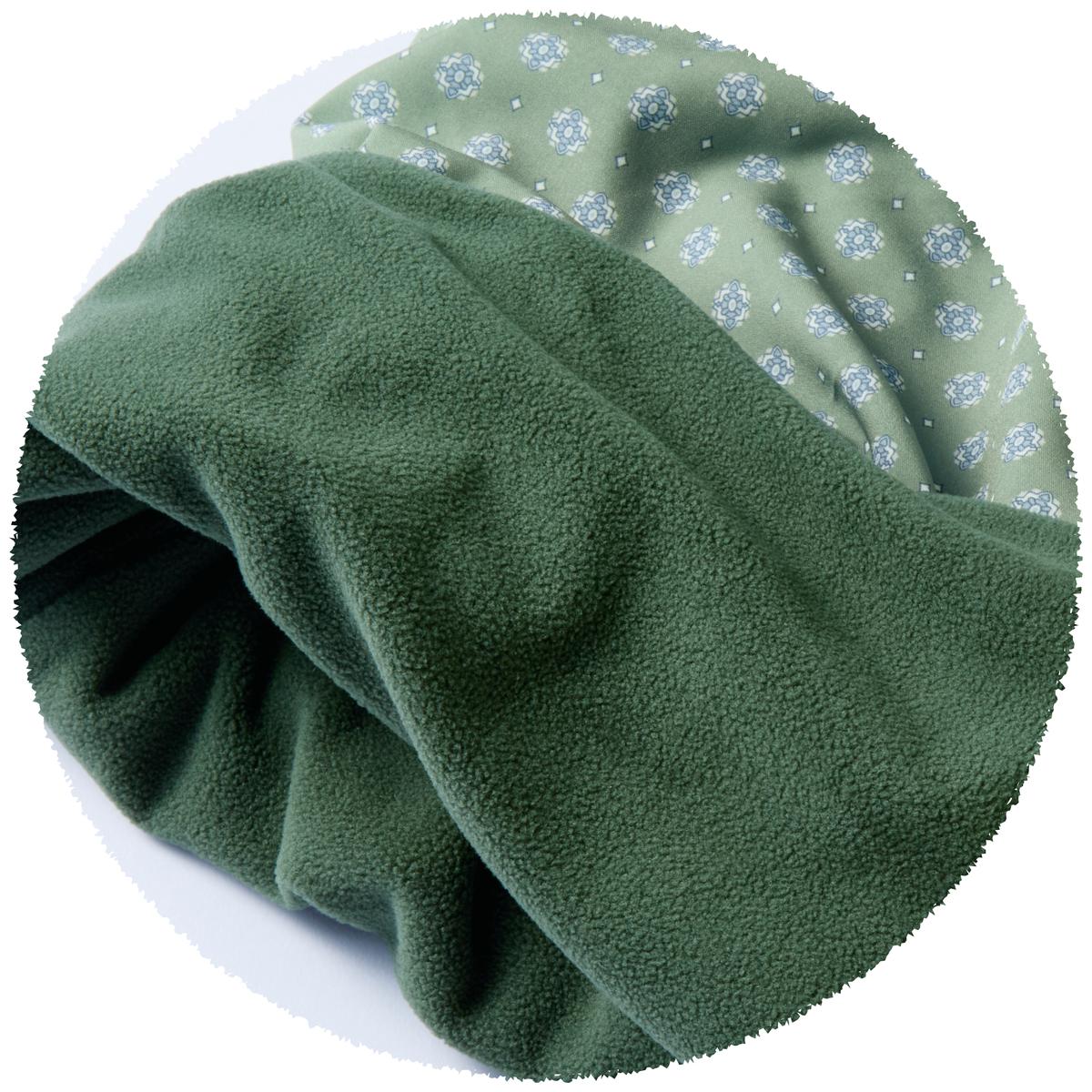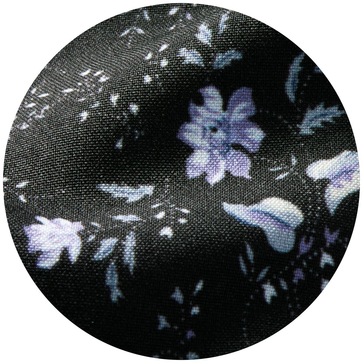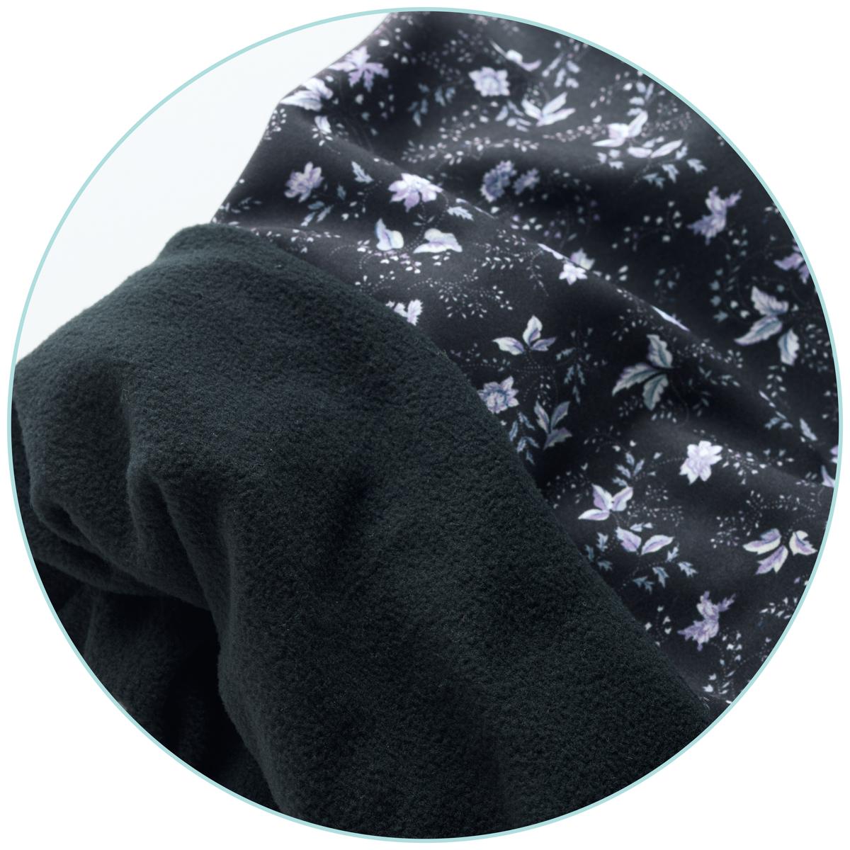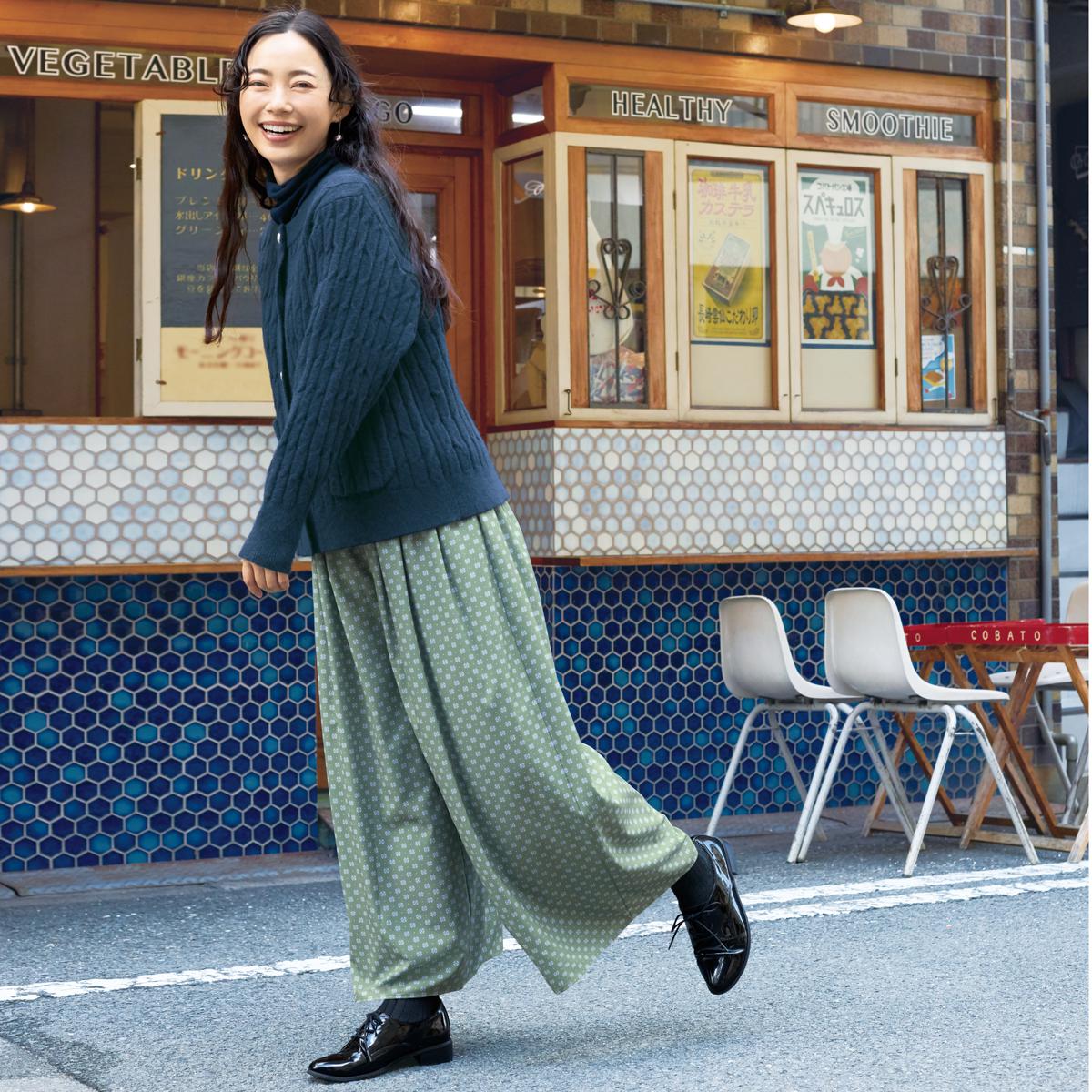 可愛らしいデシンプリントで華やか見え。軽やかな印象なのに裏地はあったかフリース。