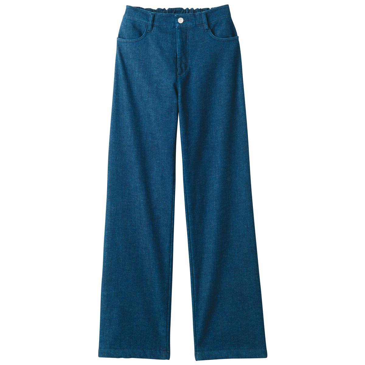 -お買い得ポイント-ルーズすぎないきれいめワイドシルエットに裏ボアであたたか!前後左右ポケット付きの本格仕様で大人に似合うデニムです。-デザイン-きれい見えする程よいワイド感のあるデザイン。全面裏ボアとウエスト後ゴムであったかラクラク♪-素材特徴-ストレッチの効いたデニム生地とボアを1枚に仕立てたボンディング仕様だから、モタつきにくくスッキリ。
