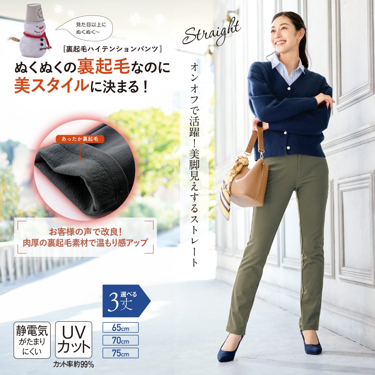 ★シリーズ累計167万本突破!(2025年10月時点)ぬくぬくの裏起毛なのに美スタイルに決まる!お客様の声で改良!肉厚の裏起毛素材で温もり感アップ