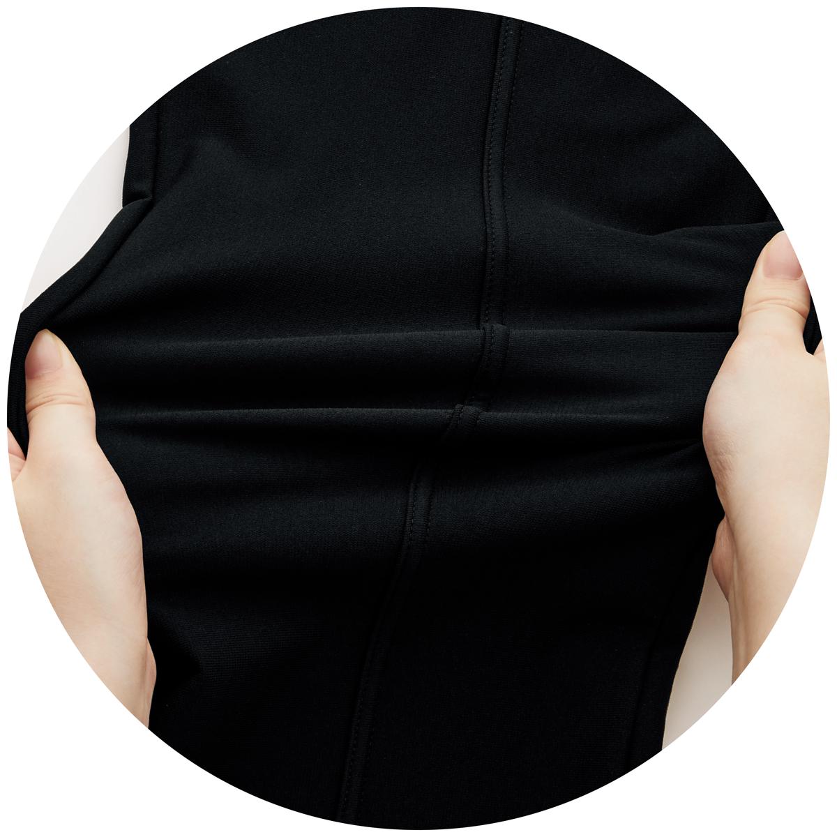 脚部分は伸びやかなタテヨコストレッチで動きもラク。なめらかな表面感のある裏起毛生地が足入れした時のひんやりを感じにくくします。