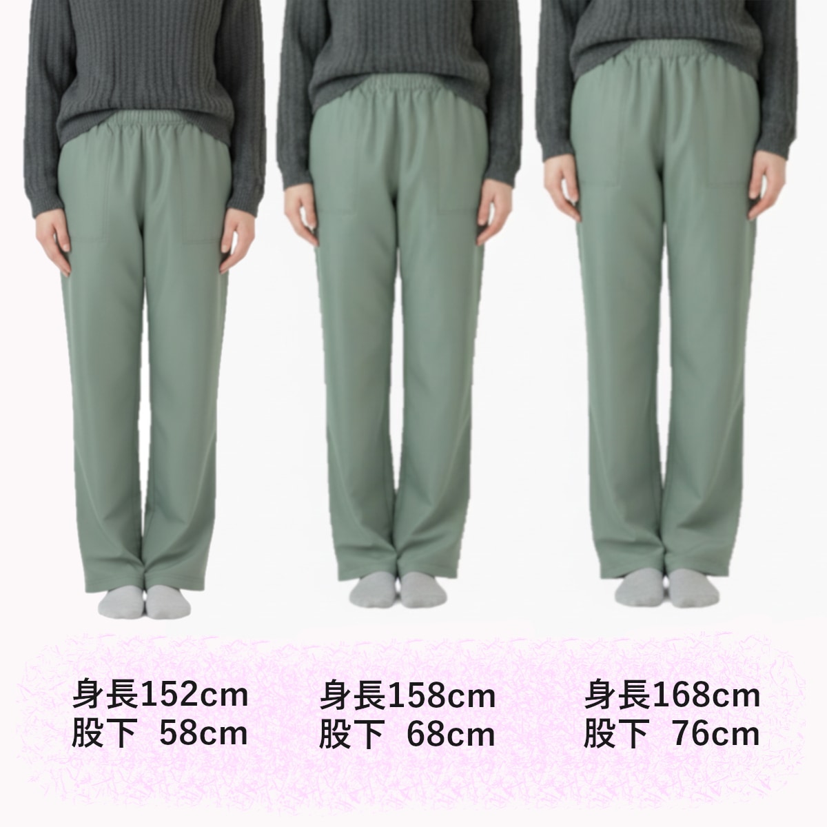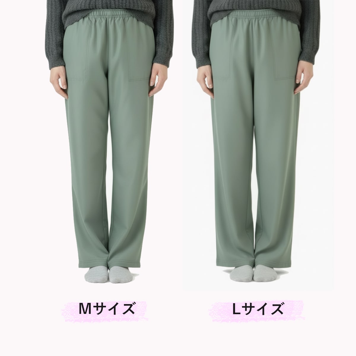 グレイッシュグリーン(裏シャギー:アイボリー) ウエスト総ゴムでラクラク