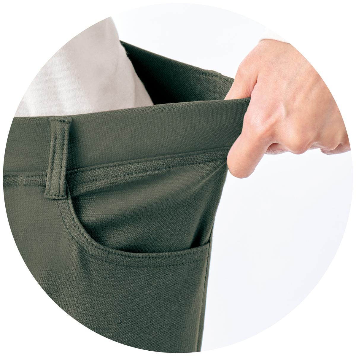 着脱も楽ちんなウエスト総ゴム仕様 総ゴム仕様でウエスト楽ちん、フロントは見た目すっきり