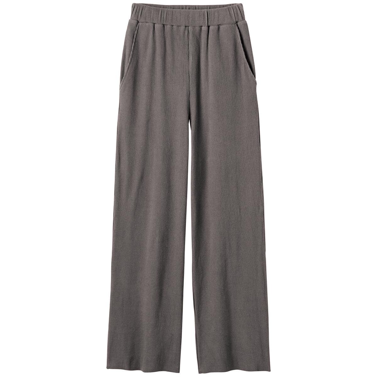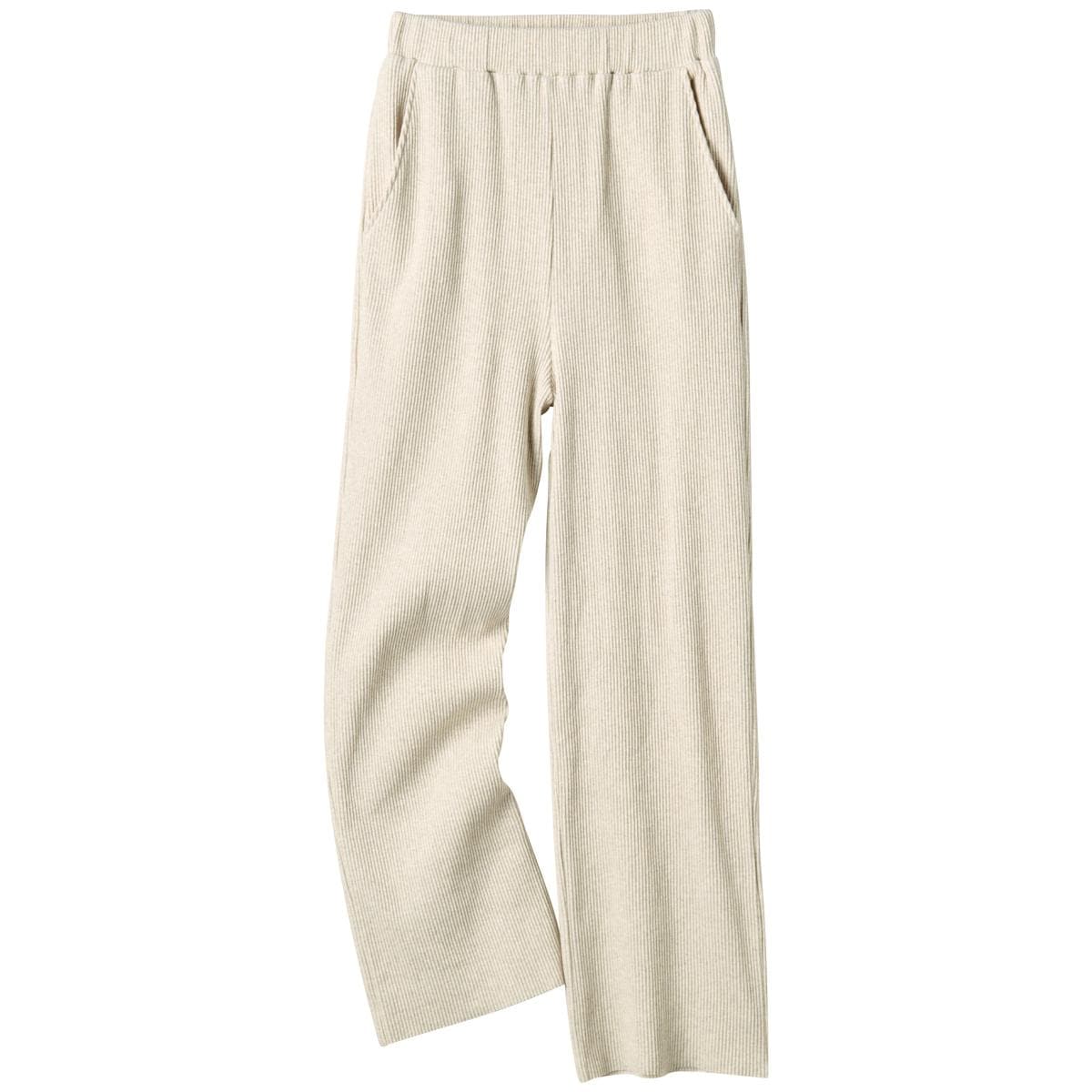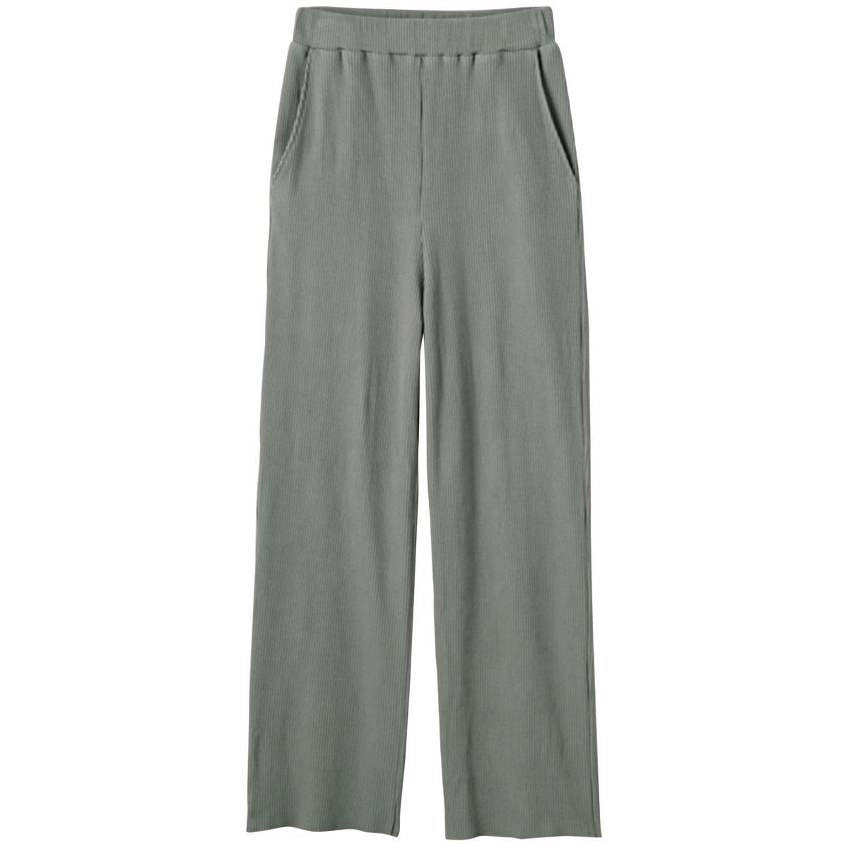 -お買い得ポイント-足首見せで抜け感のあるアンクル丈と伸びの良いリブ素材でリラックス度も高いです。-デザイン-裾は裁ち切り仕様のアンクル丈ですっきり見え。ウエストは総ゴム+スピンドル仕様で調整ラクラク。-素材特徴-程よい肉厚でラインを拾いにくい伸縮性の高いリブ素材。リブの凹凸でタテ長効果も。