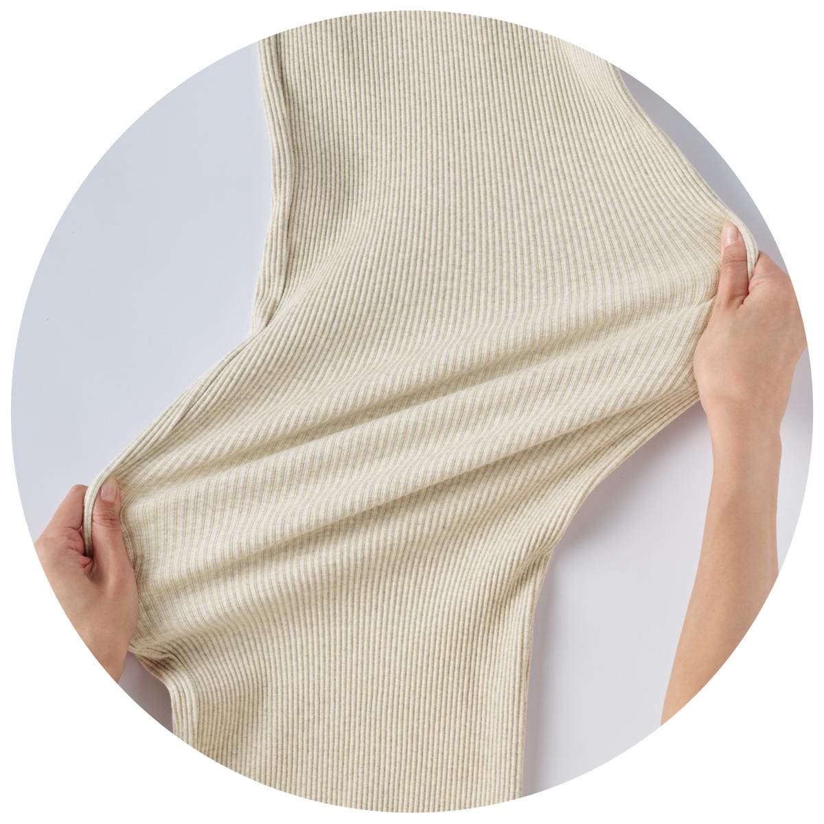程よい肉厚でラインを拾いにくい伸縮性の高いリブ素材。 リブの凹凸でタテ長効果も