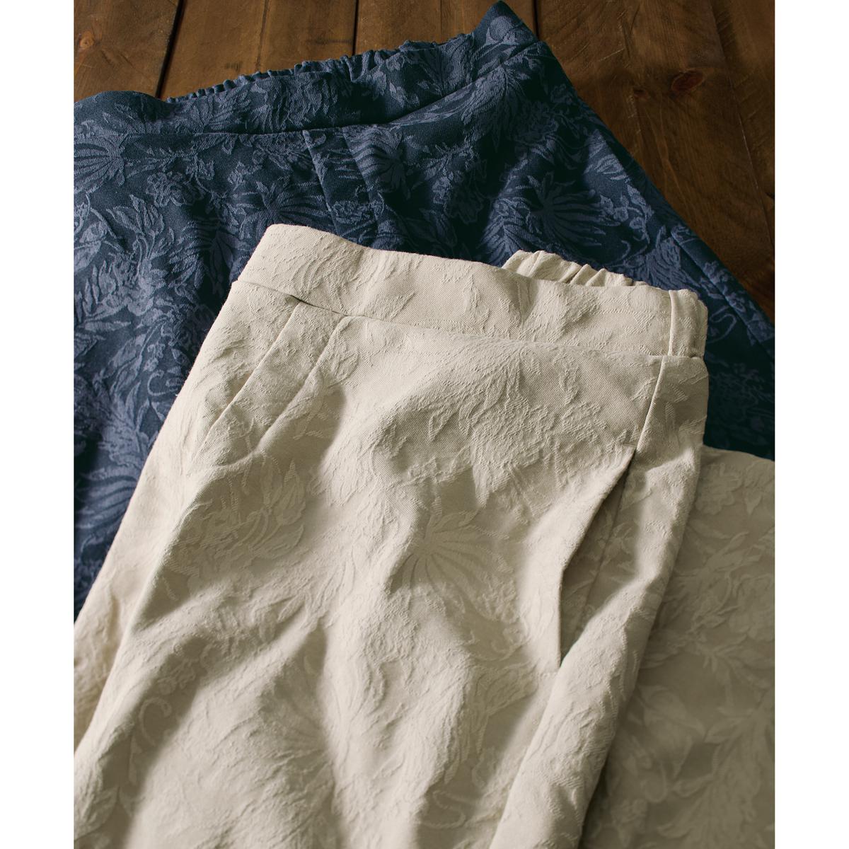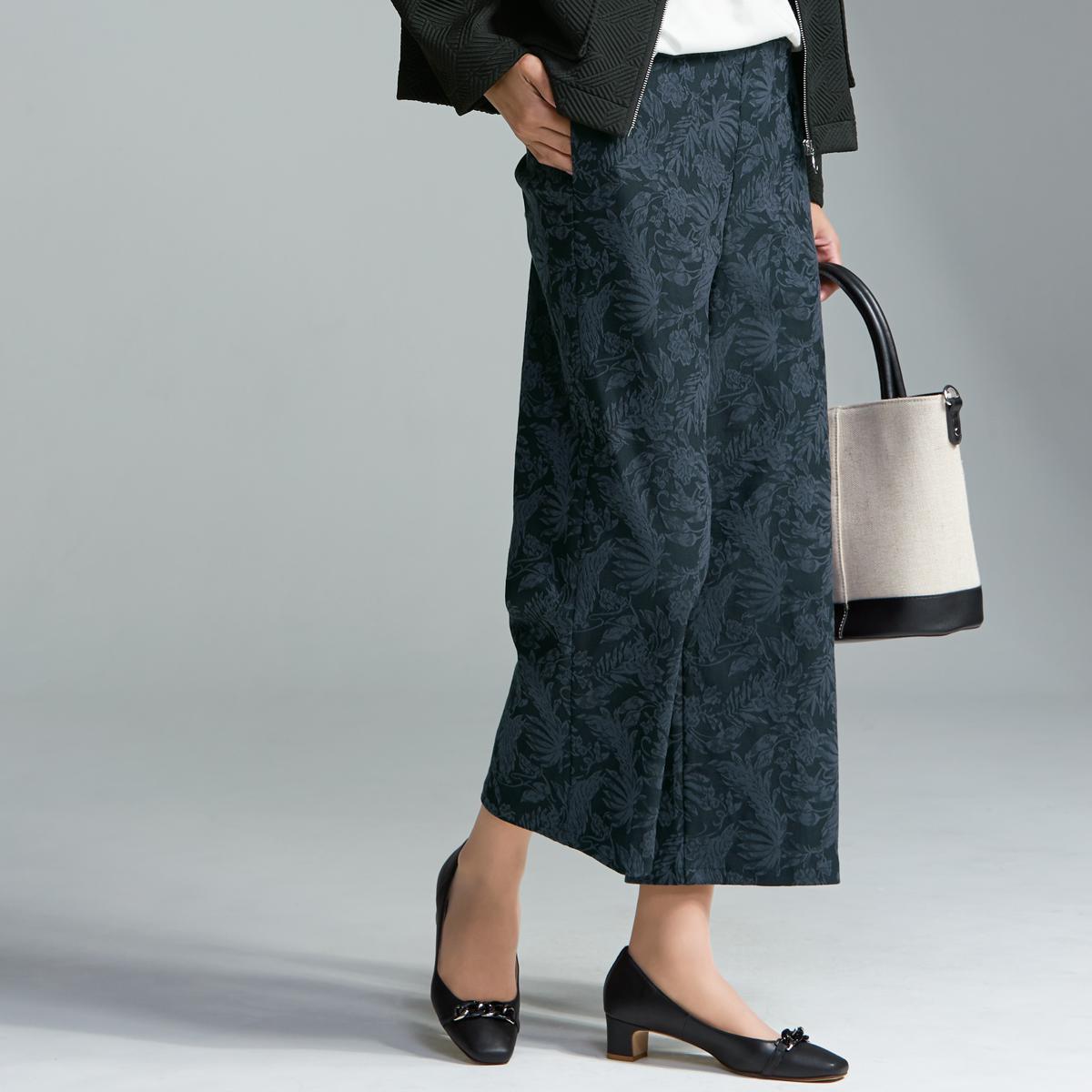 -お買い得ポイント-ノーブルなシーンに映えるジャカードセミワイドパンツです。-デザイン-陰影を生むジャカード織りが上品。ゆったり感のあるクロップド丈から足首が見えて、すっきりした印象に。-素材特徴-程よいヨコストレッチで動きやすく快適。