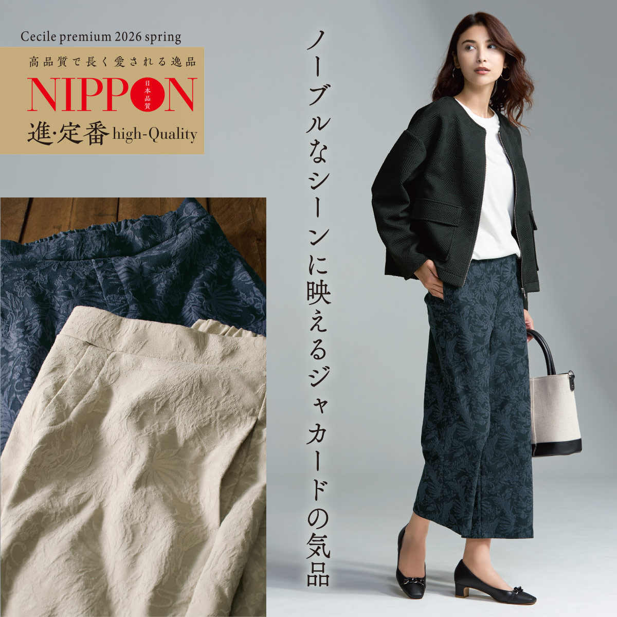日本製ジャカードセミワイドパンツ