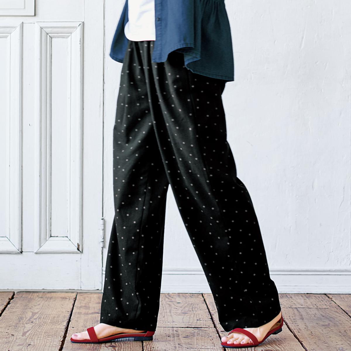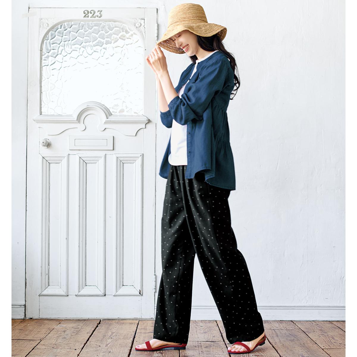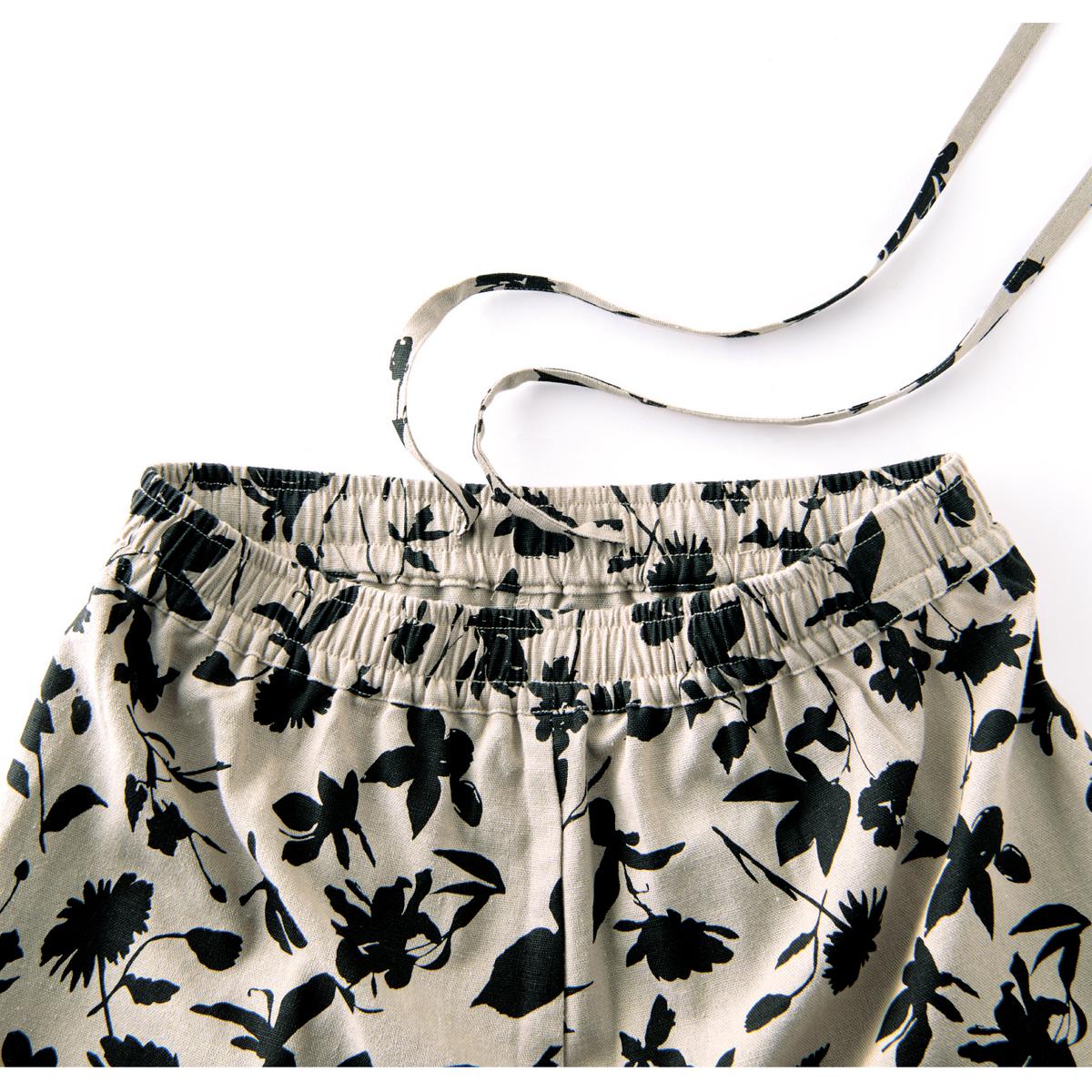 -お買い得ポイント-落ち着いたプリント柄&ワイドなシルエットはシンプルなトップスと合わせるだけでラクしてお洒落な着こなしに。これからの季節に大活躍です!-デザイン-ボタニカル柄、ストライプ、花柄など4種類のプリント柄からお選びいただけます。ウエストは総ゴム仕様でラクラク。内側にはサイズ調整できるスピンドル付き。-素材特徴-麻の通気性とレーヨンのとろみ感を併せもつ快適素材。