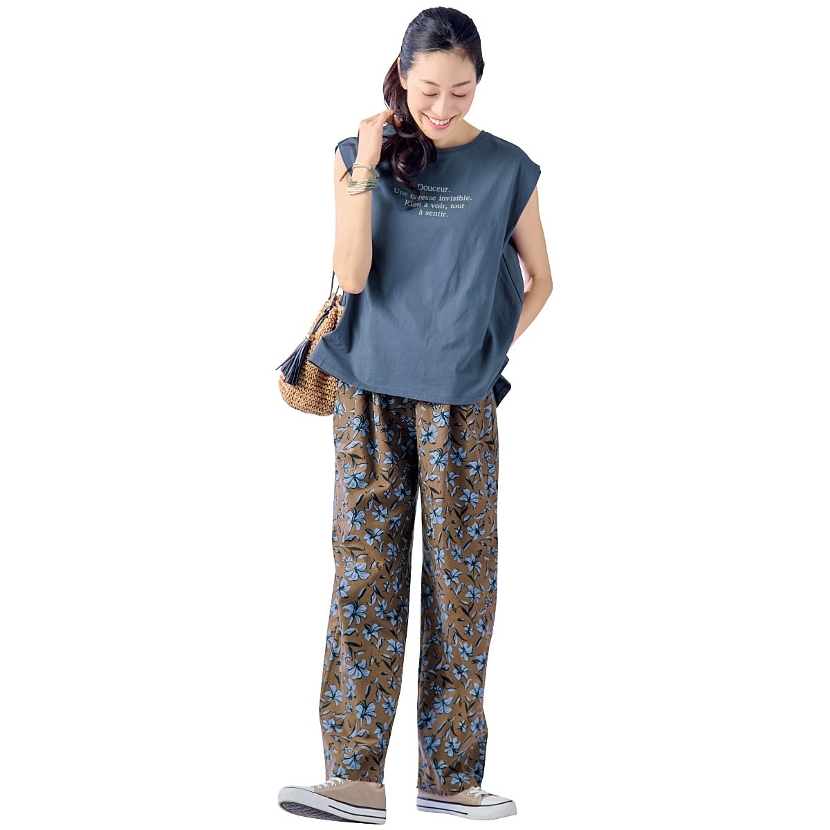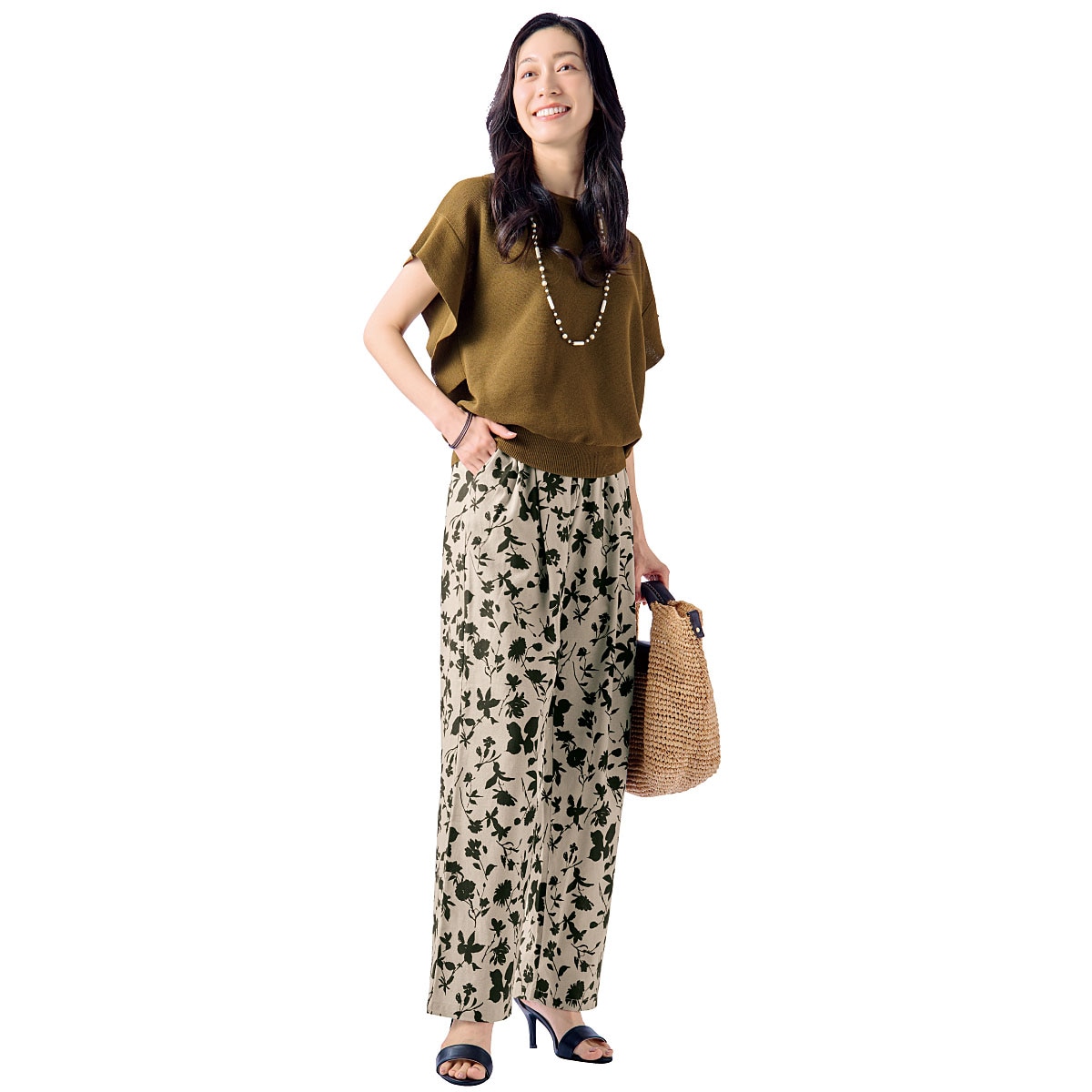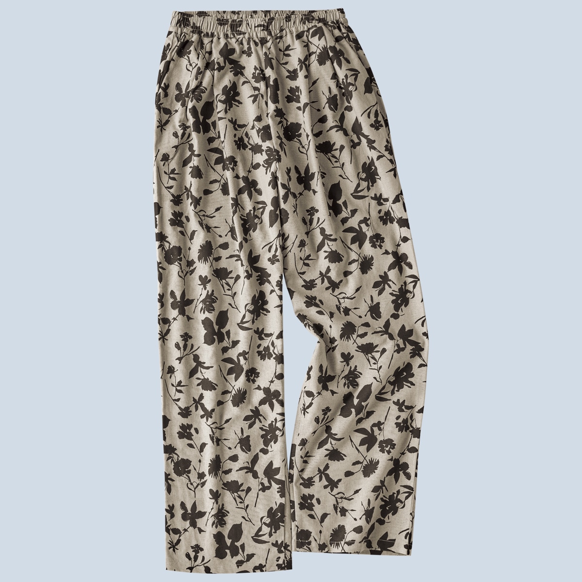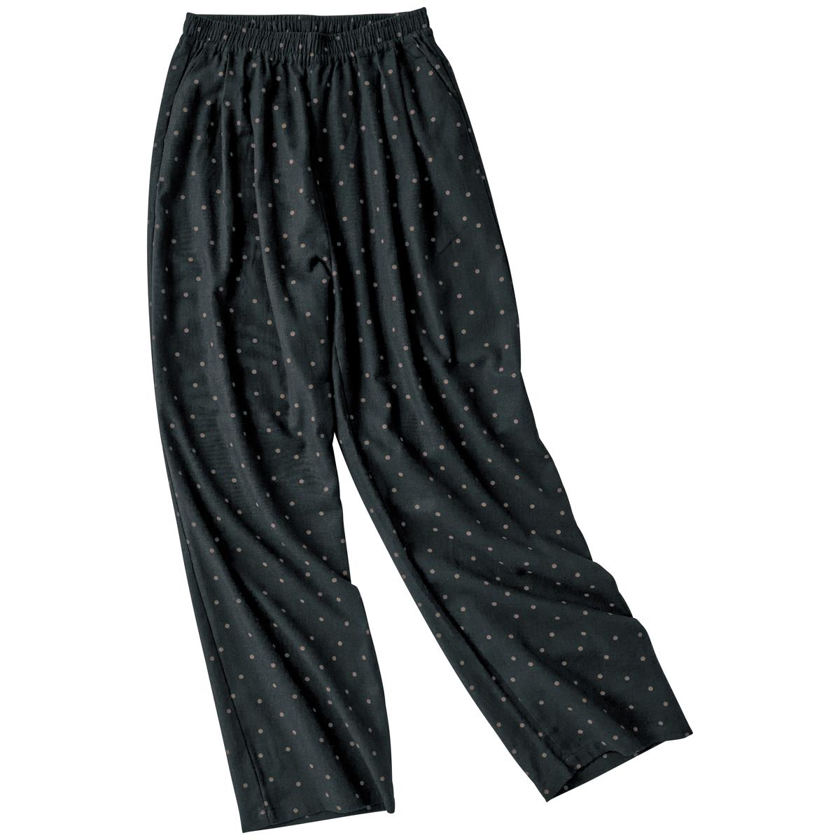 -お買い得ポイント-落ち着いたプリント柄&ワイドなシルエットはシンプルなトップスと合わせるだけでラクしてお洒落な着こなしに。これからの季節に大活躍です!-デザイン-ボタニカル柄、ストライプ、花柄など4種類のプリント柄からお選びいただけます。ウエストは総ゴム仕様でラクラク。内側にはサイズ調整できるスピンドル付き。-素材特徴-麻の通気性とレーヨンのとろみ感を併せもつ快適素材。