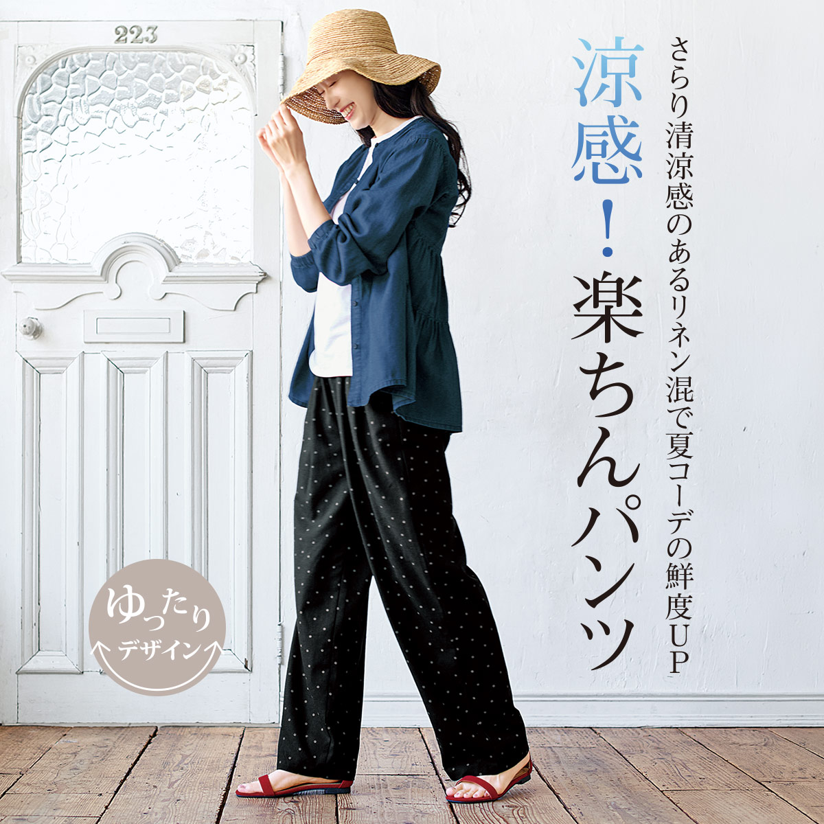 さらり清涼感のあるリネン混で夏コーデの鮮度UP!涼感!楽ちんパンツ。